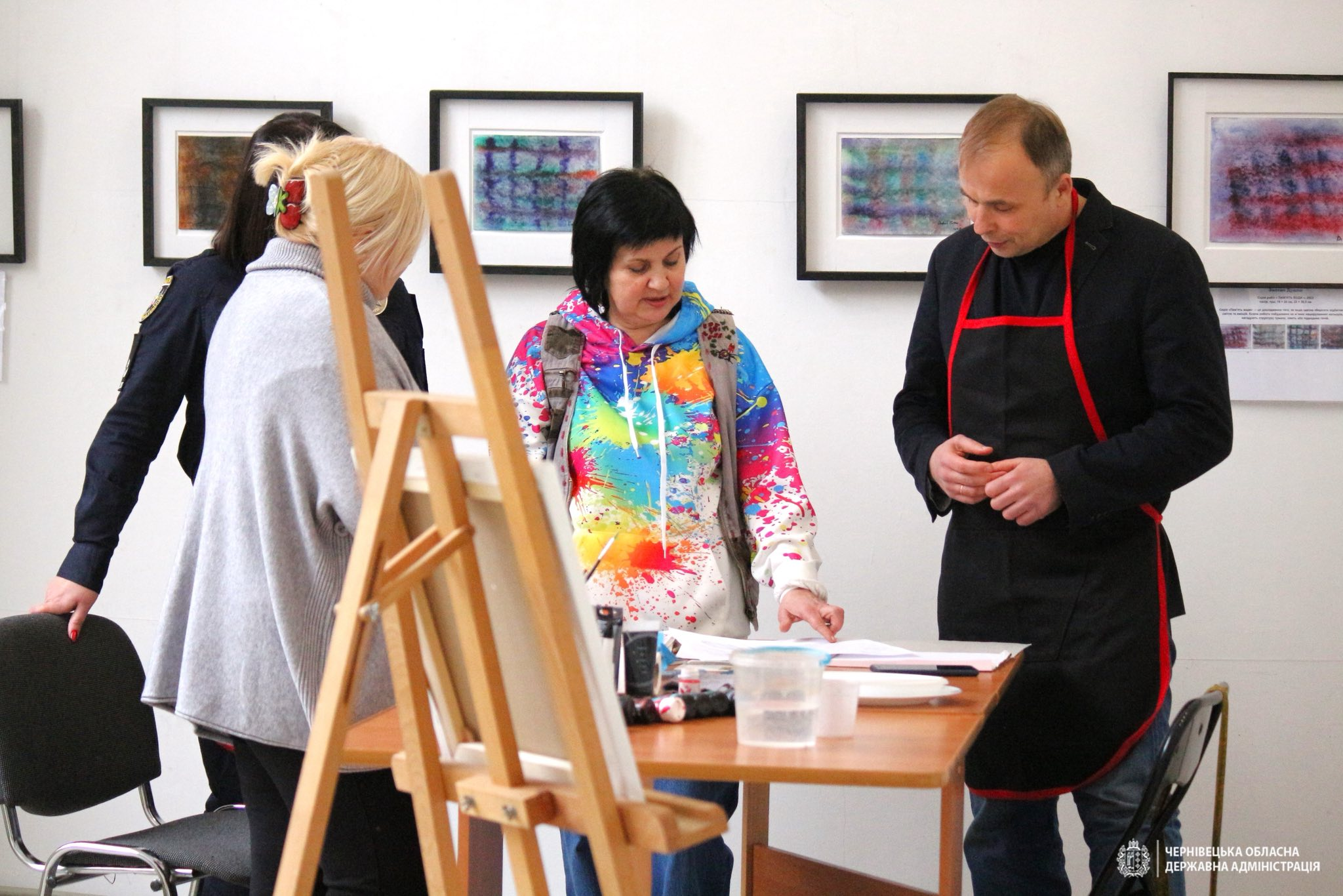 У межах кампанії «Резолюція ООН 1325 «Жінки. Мир. Безпека» у чернівецькому центрі культури «Вернісаж» провели мистецьку акцію. До творчого процесу ініціативи долучилися заступник начальника Чернівецької ОВА Роман Греба та старший інспектор управління дотримання прав людини Департаменту головної інспекції та дотримання прав людини Національної поліції України, майор поліції Альона Тодоріко.Творчий процес супроводжувала художниця Оксана Мартинюк. Створена ними картина буде представлена під час виставки «1325 змінює світ».