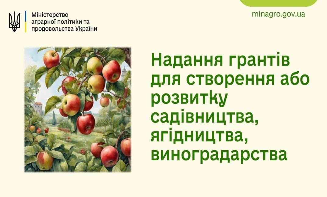 2 лютого 2026 року розпочинається прийом заяв на отримання гранту для створення або розвитку садівництва, ягідництва та виноградарства, а також для створення або розвитку тепличного господарства.