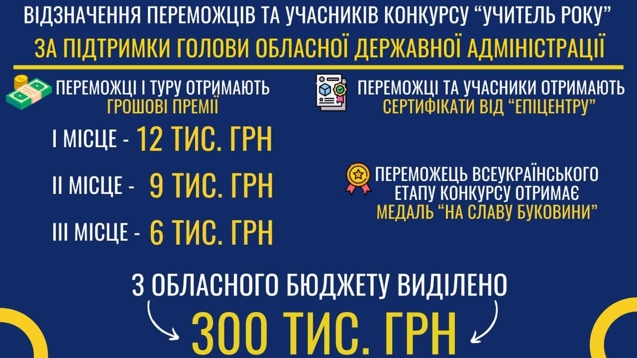 Переможець другого (всеукраїнського) туру буде відзначений медаллю «На славу Буковини».