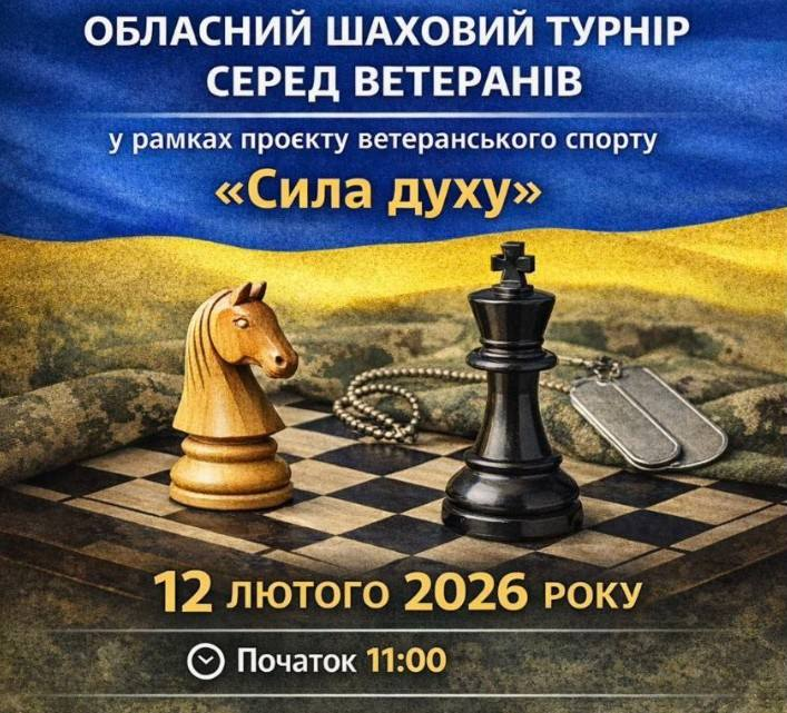 У Чернівцях відбудеться обласний шаховий турнір для ветеранів, який проходитиме в межах проєкту ветеранського спорту «Сила духу». Захід покликаний підтримати ветеранів, створивши простір для спілкування та інтелектуального розвитку.