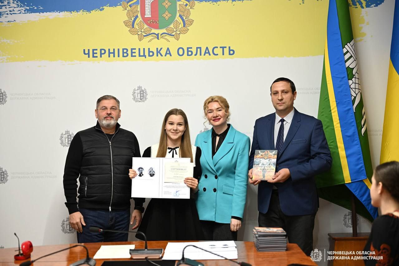 - Жаворонковій Валерії, учениці Вижницького ліцею «Перша українська гімназія на Буковині», авторці дослідницької роботи «Революція на граніті як культурний феномен національного пробудження України»;