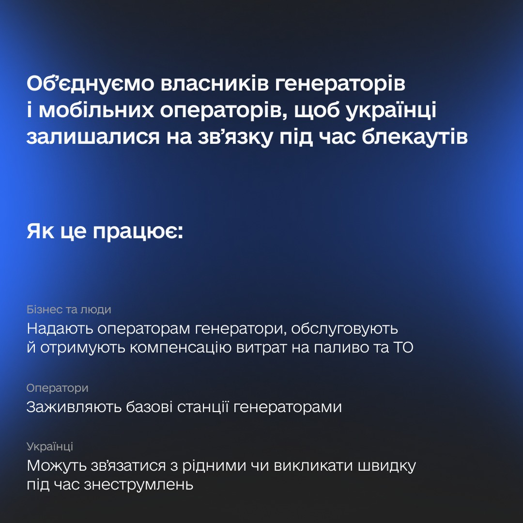 За перший тиждень роботи проєкту отримали сотні відгуків та пропозицій від українців і бізнесу. Завдяки вашому фідбеку проаналізували умови — і оператори змінили розмір компенсації для власників генераторів.