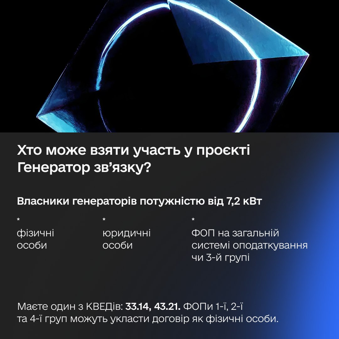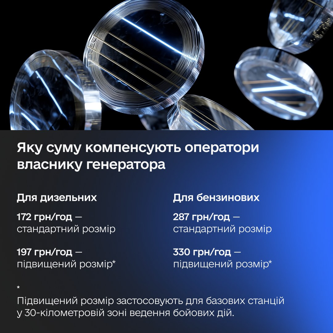 2️ ввели підвищений тариф для генераторів, які живитимуть базові станції в 30-кілометровій зоні бойових дій.