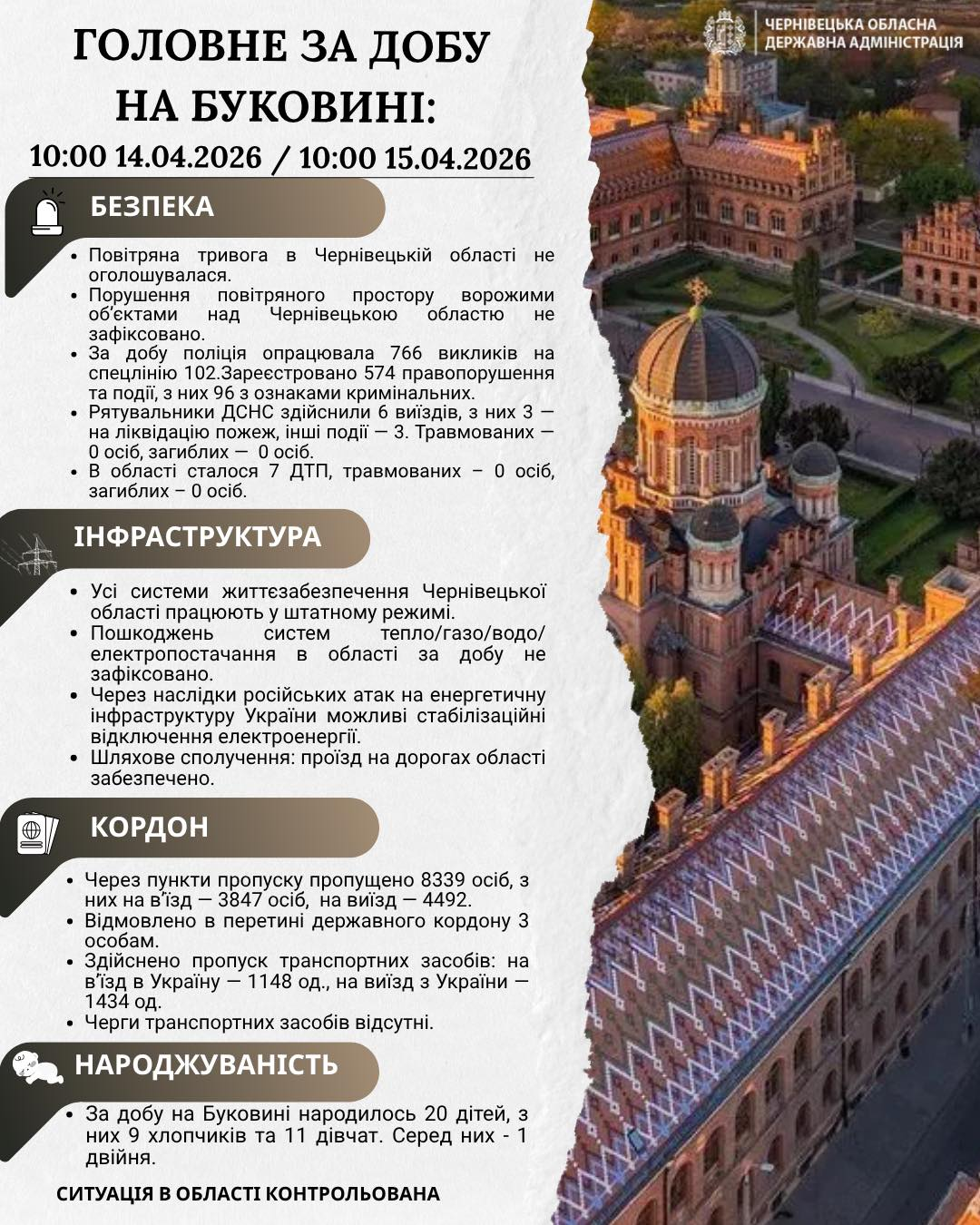 Оперативна інформація від Генерального штабу Збройних Сил України станом на 15 квітня