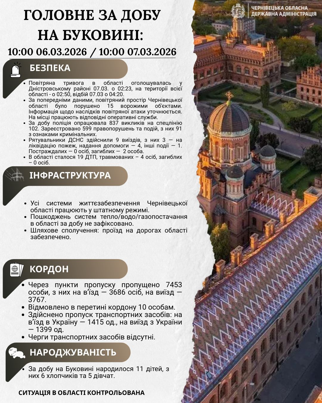 Головне за добу на Буковині станом на 8 березня
