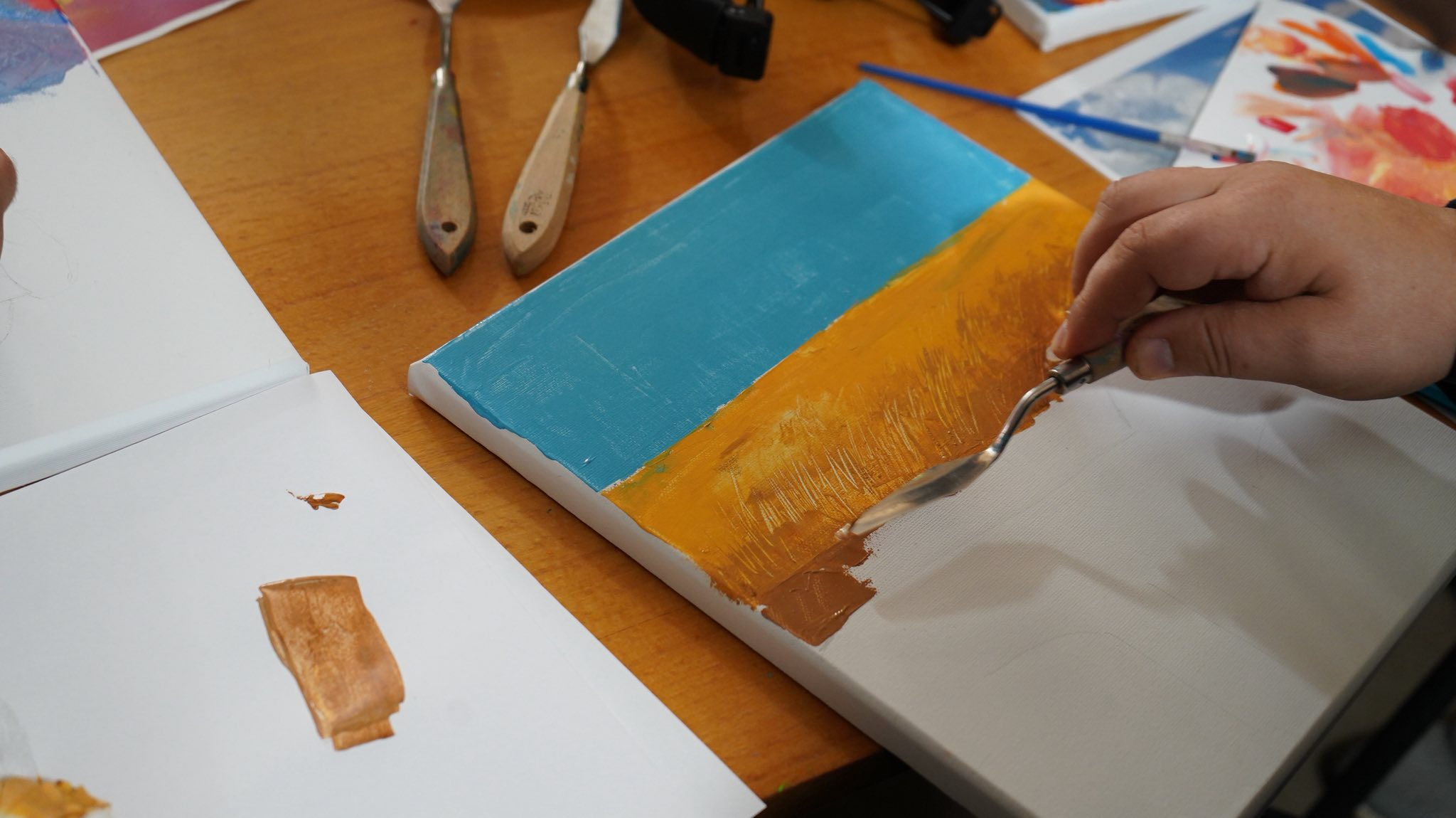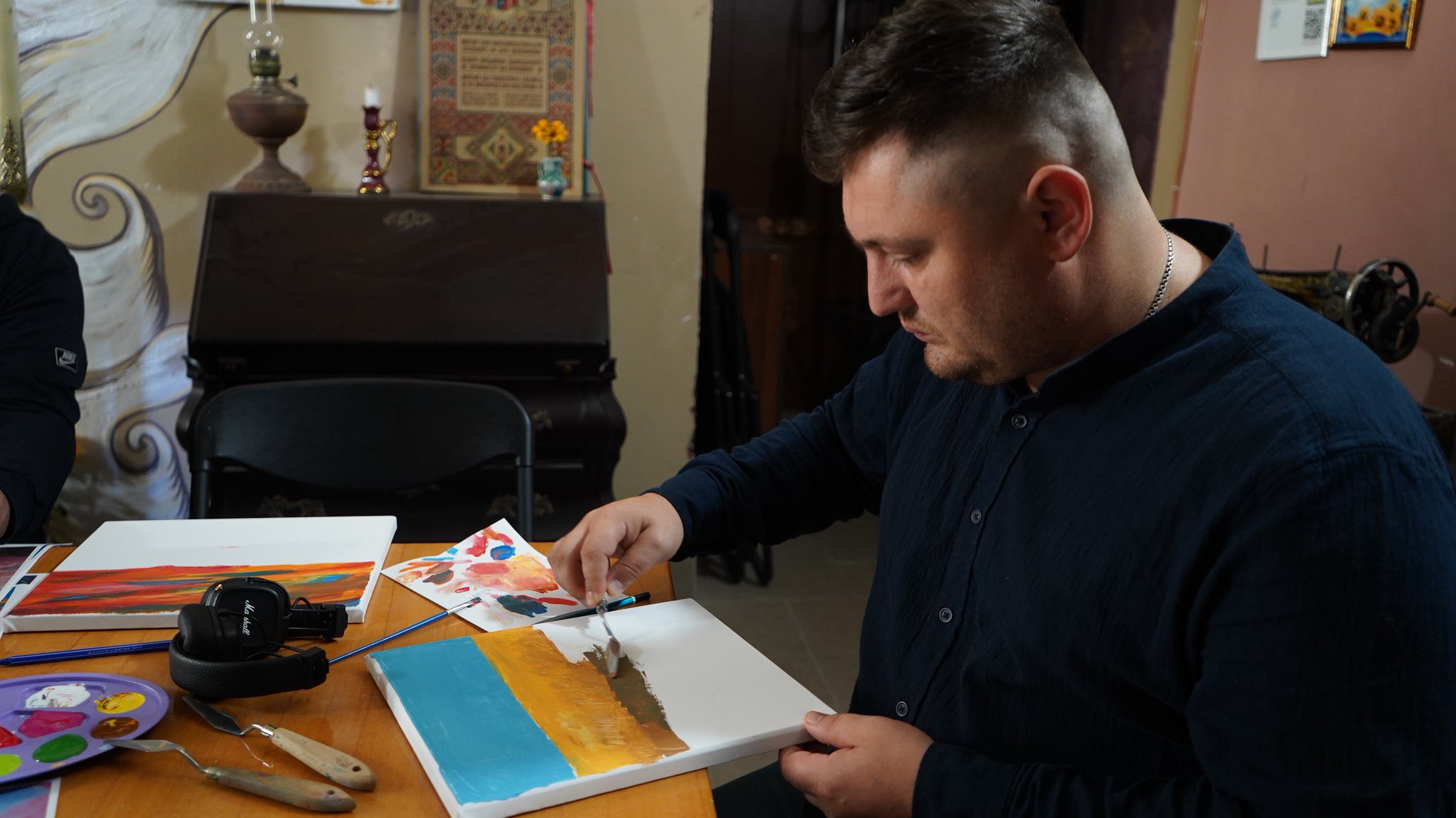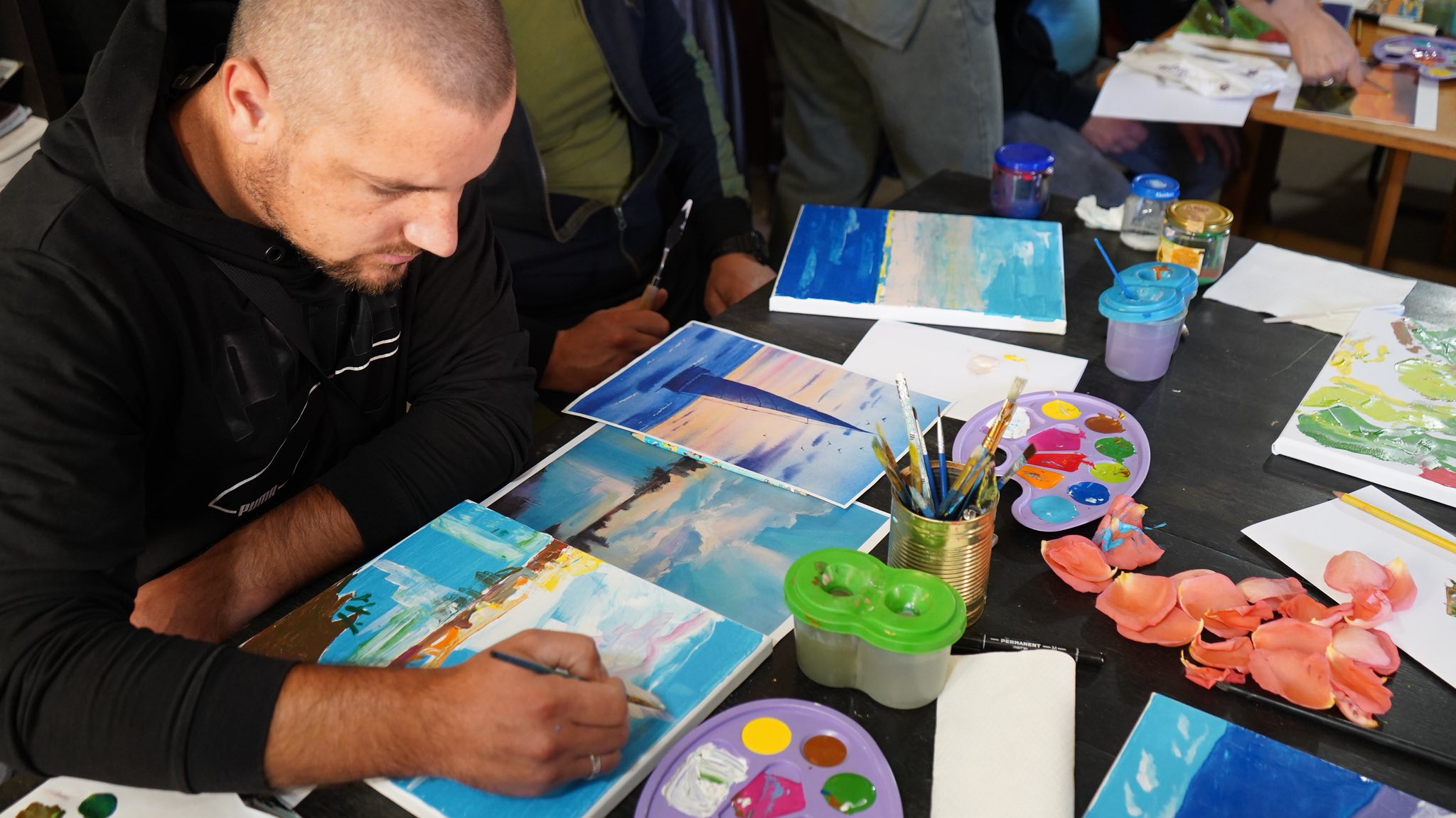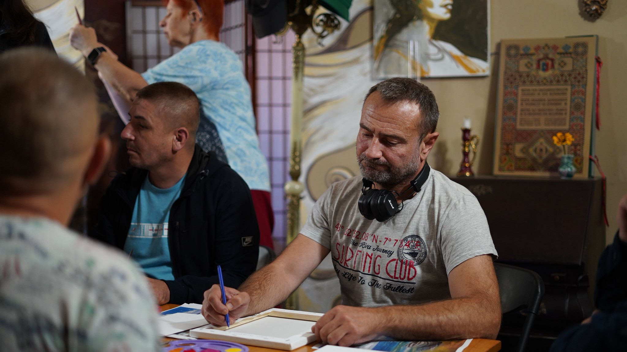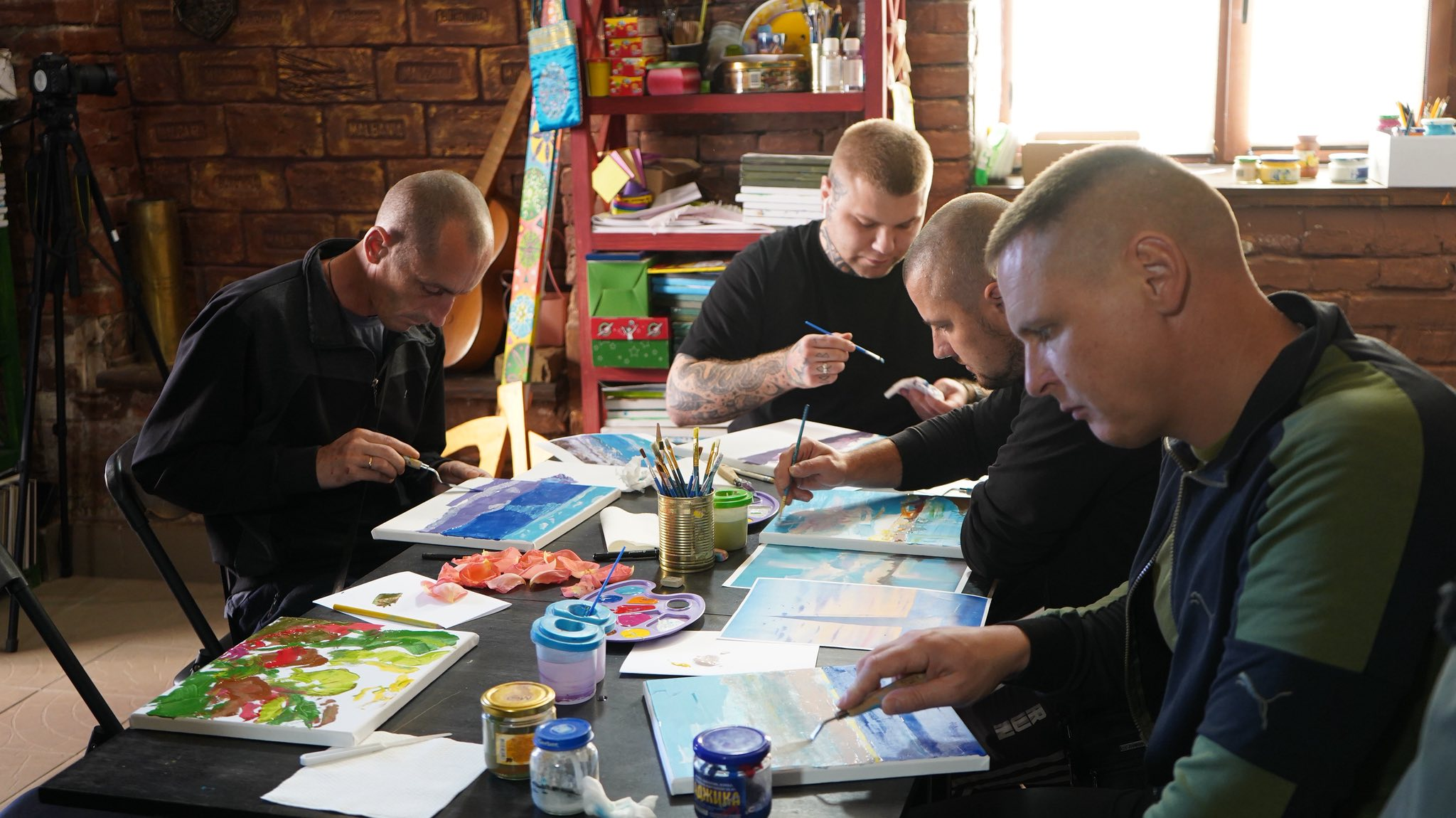 Наші захисники могли спробувати себе в живописі та навчитися створювати власні картини під керівництвом відомих художників. Для багатьох це був перший досвід роботи з акриловими фарбами.