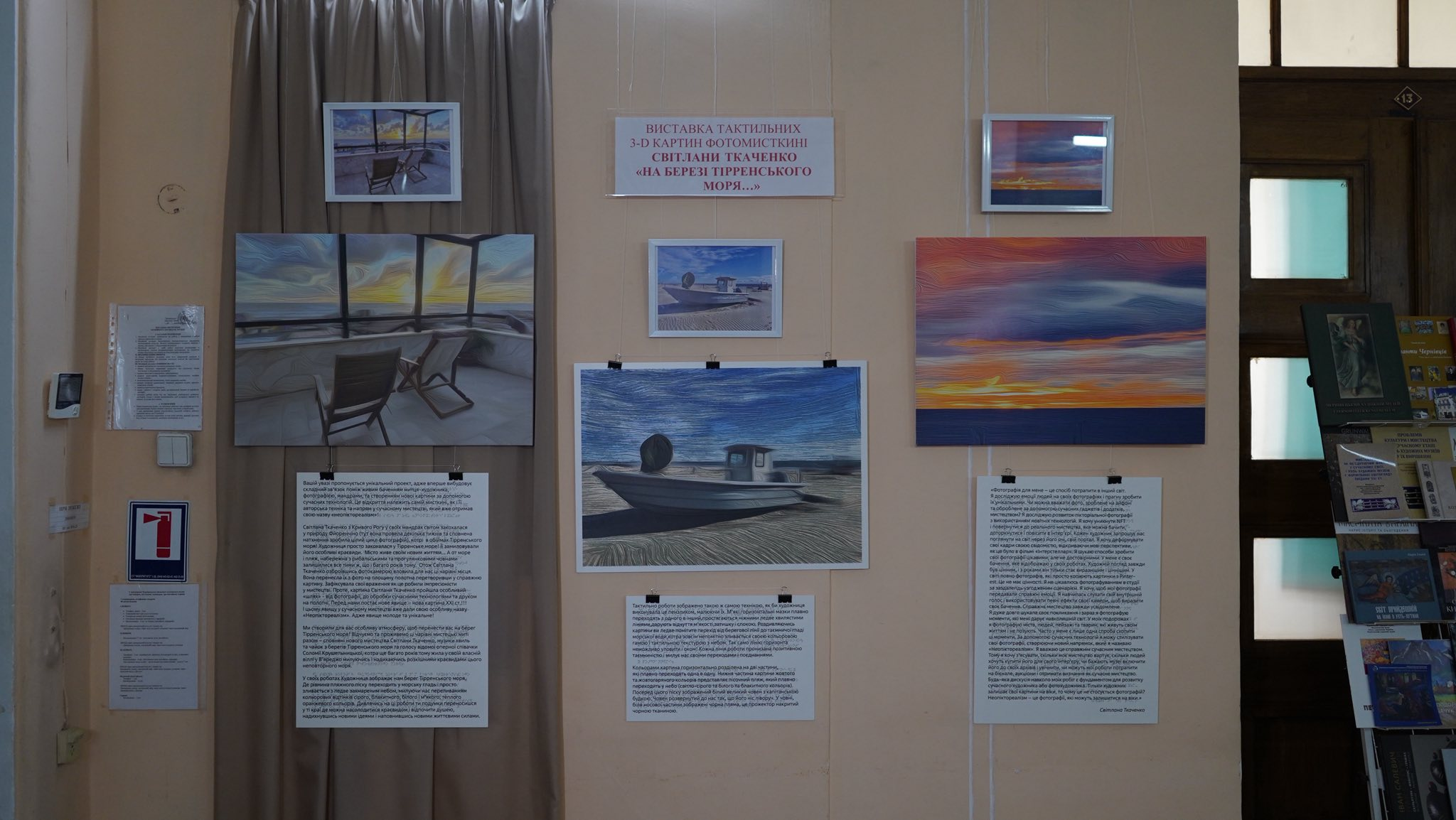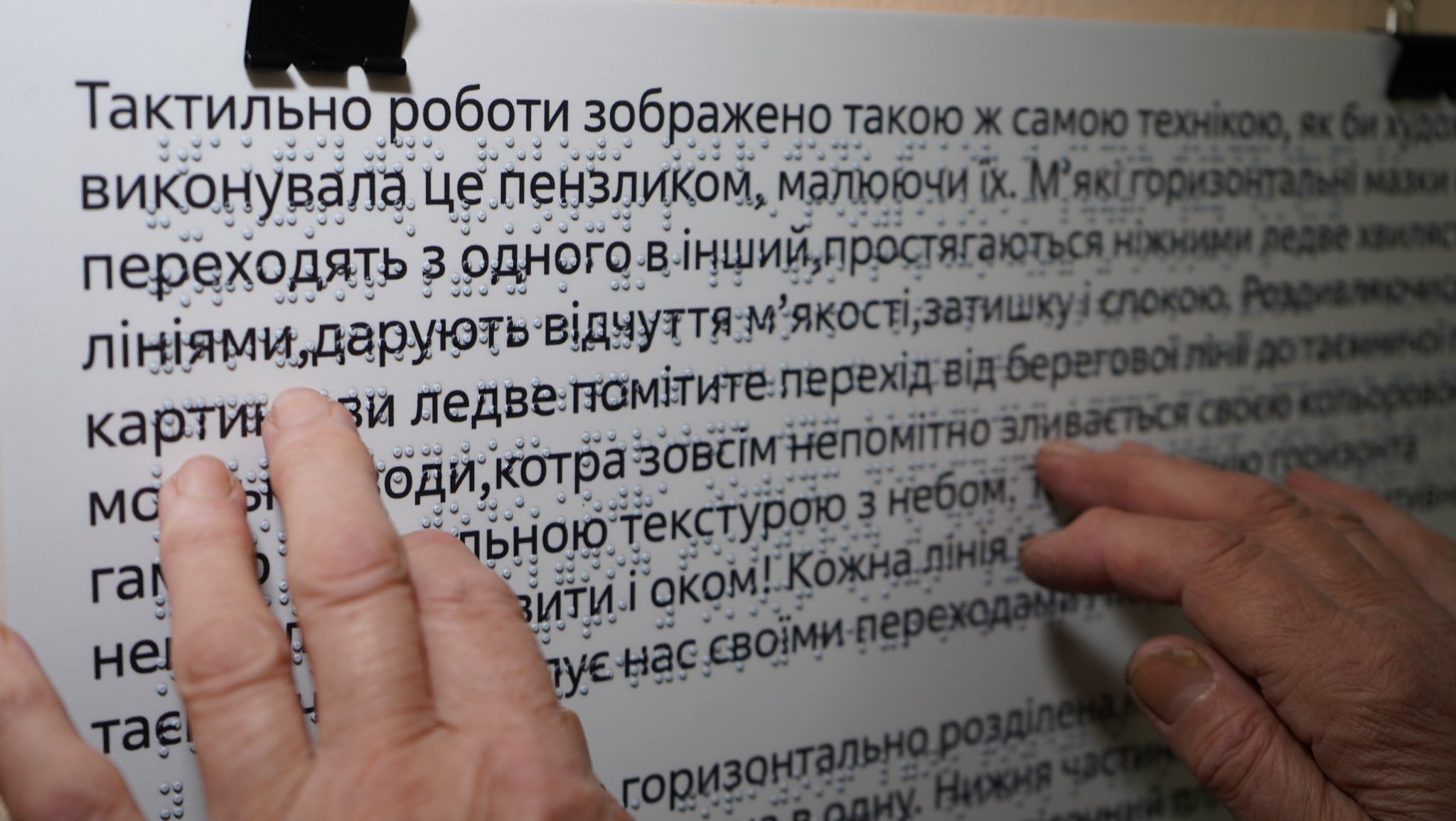 Фотографії мисткині з Кривого Рогу Світлани Ткаченко відтворено за допомогою найновішої технології 3D-рельєфного друку, що дозволяє сприймати зображення не лише візуально, але і на дотик. Кожен твір супроводжується підписом шрифтом Брайля, щоб люди з порушеннями зору могли самостійно ознайомитися з його змістом.