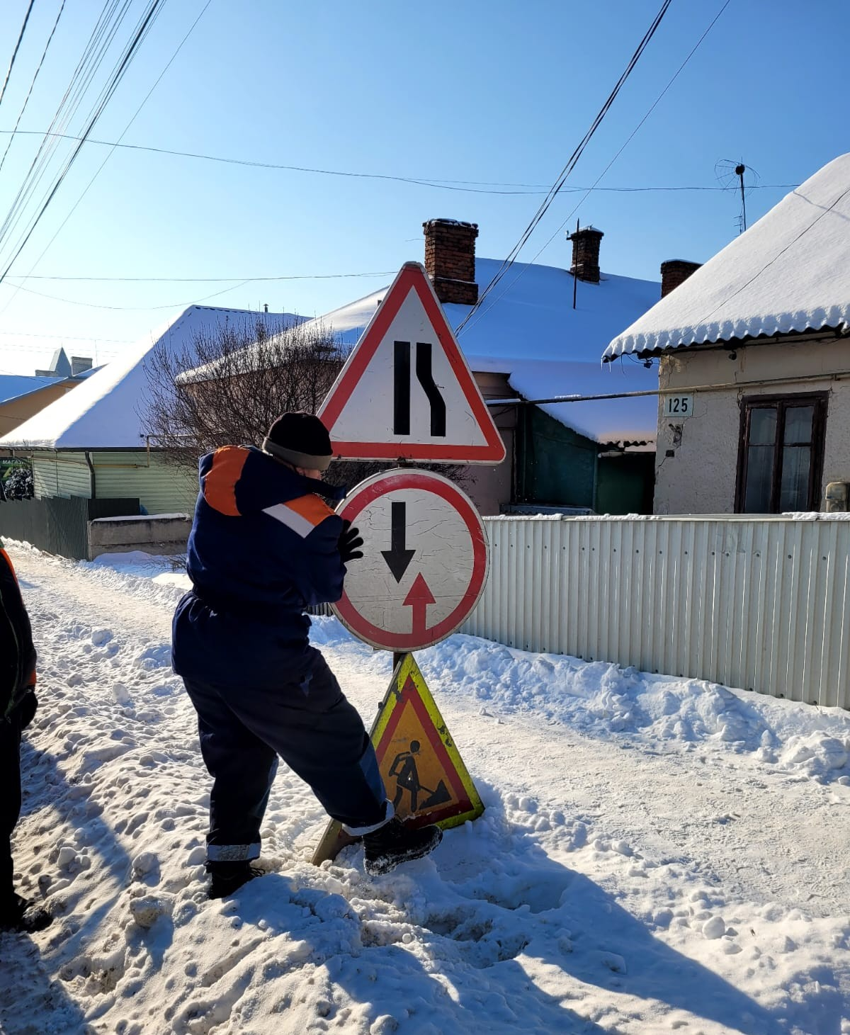 Окрім цього, експлуатаційники вирівнюють дорожні знаки, які були похилені шквальним вітром.