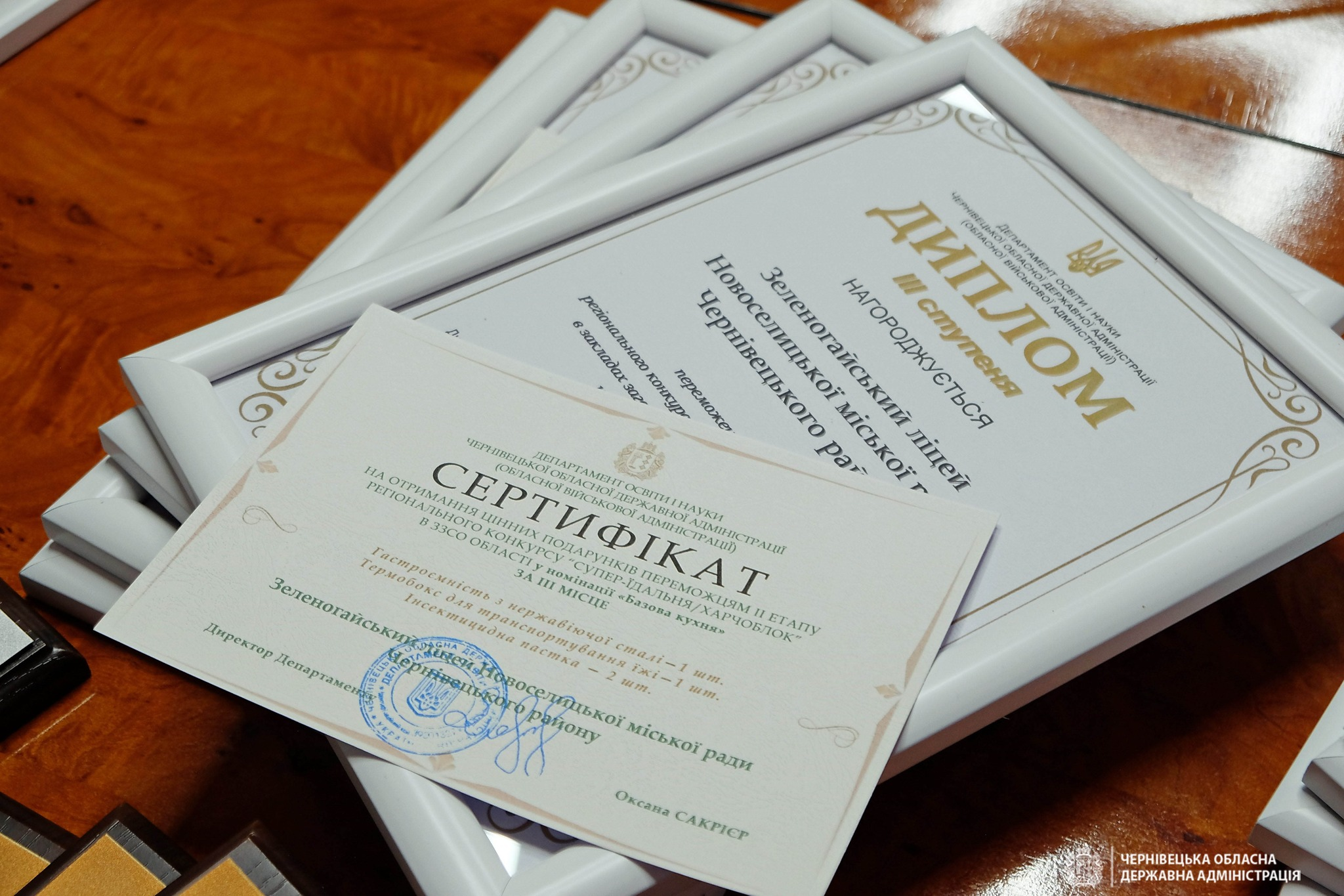 Диплом ІІІ ступеня та сертифікати на обладнання на суму 18 190 грн (гастроємність з нержавіючої сталі, термобокс, інсектицидна пастка) отримали: