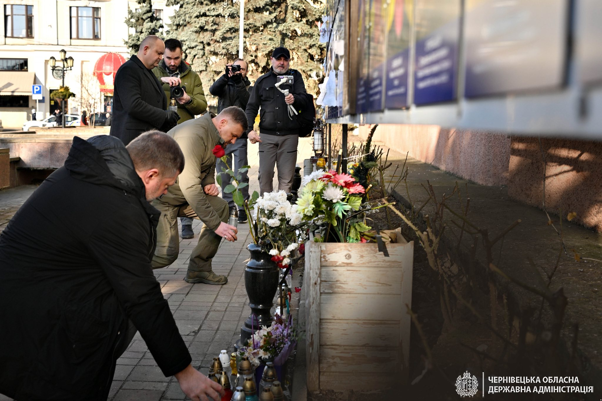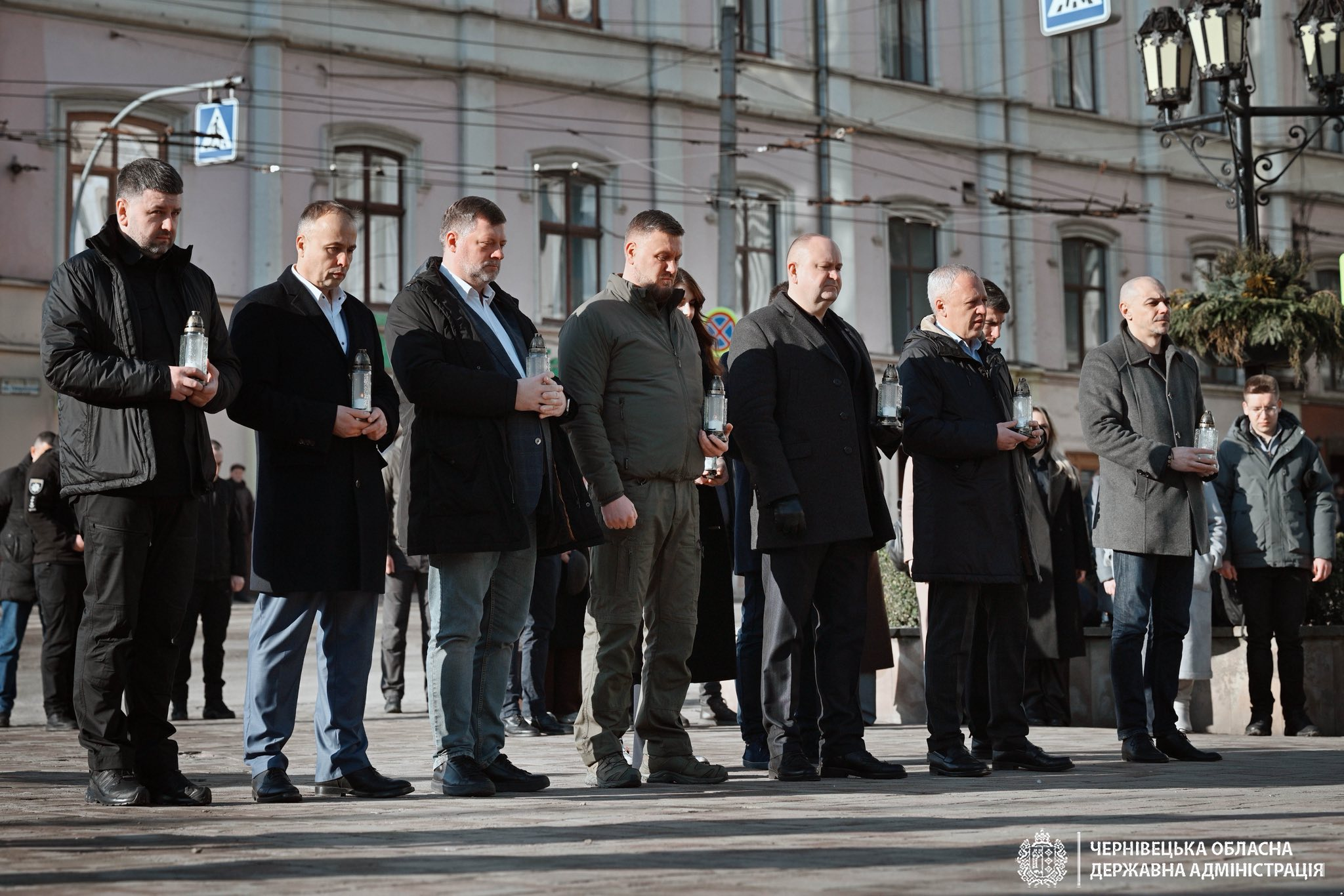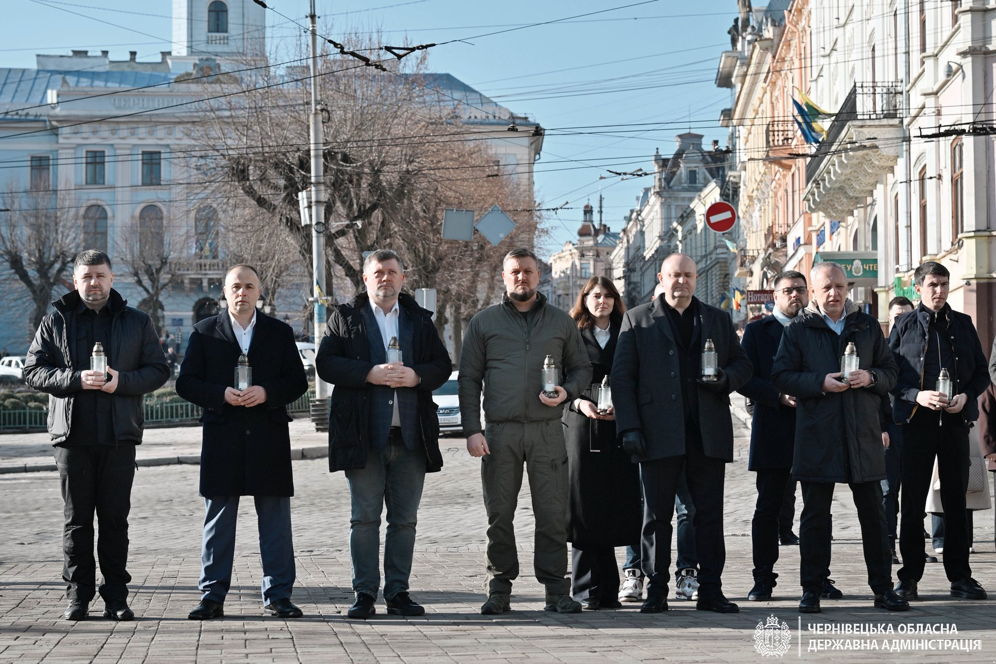 Робочий день розпочали із хвилини мовчання на Центральній площі Чернівців та вшанування памʼяті воїнів, які полягли в боротьбі за свободу і незалежність України.
