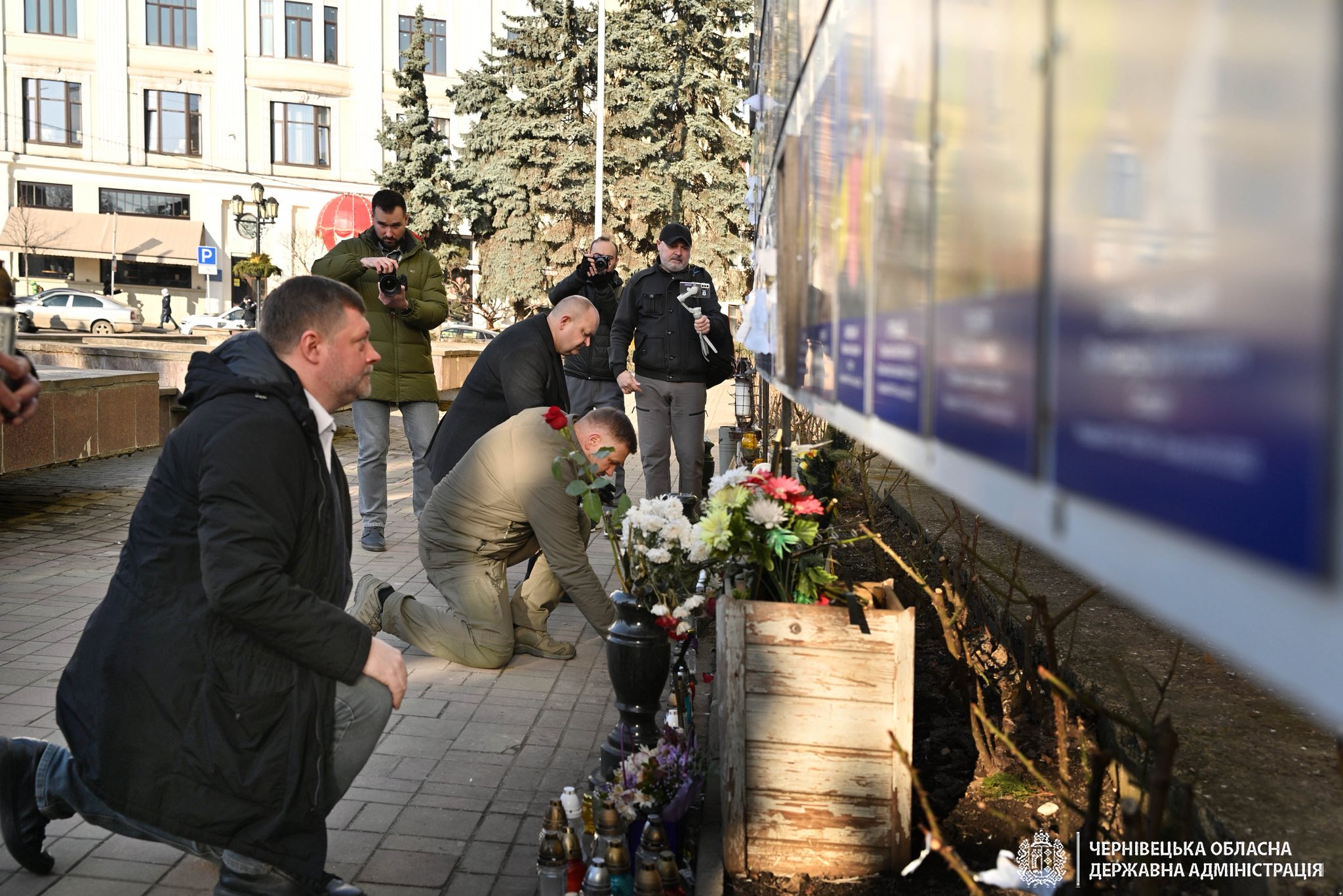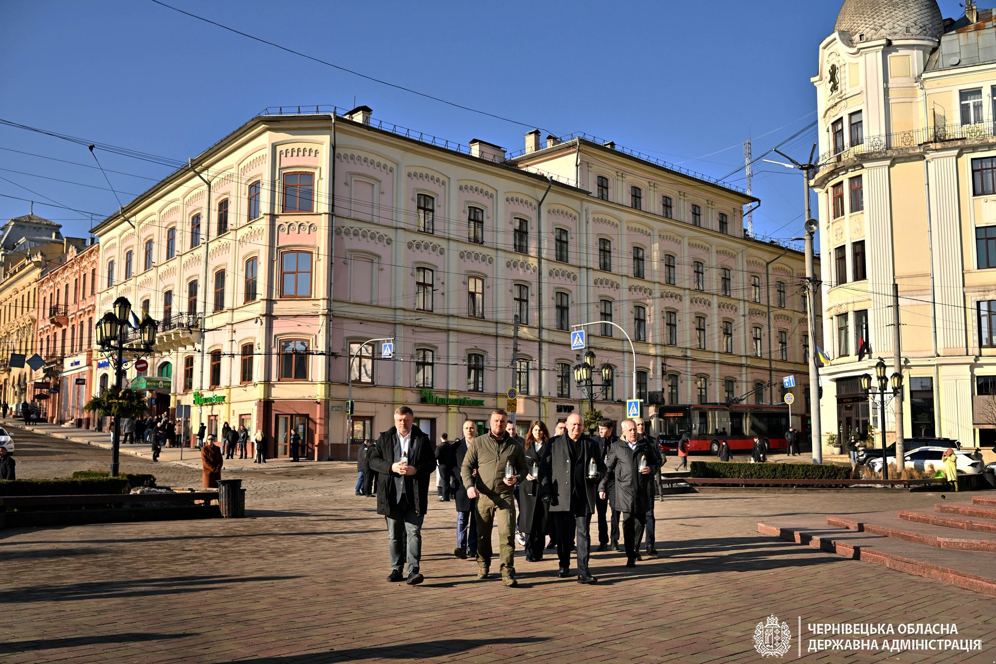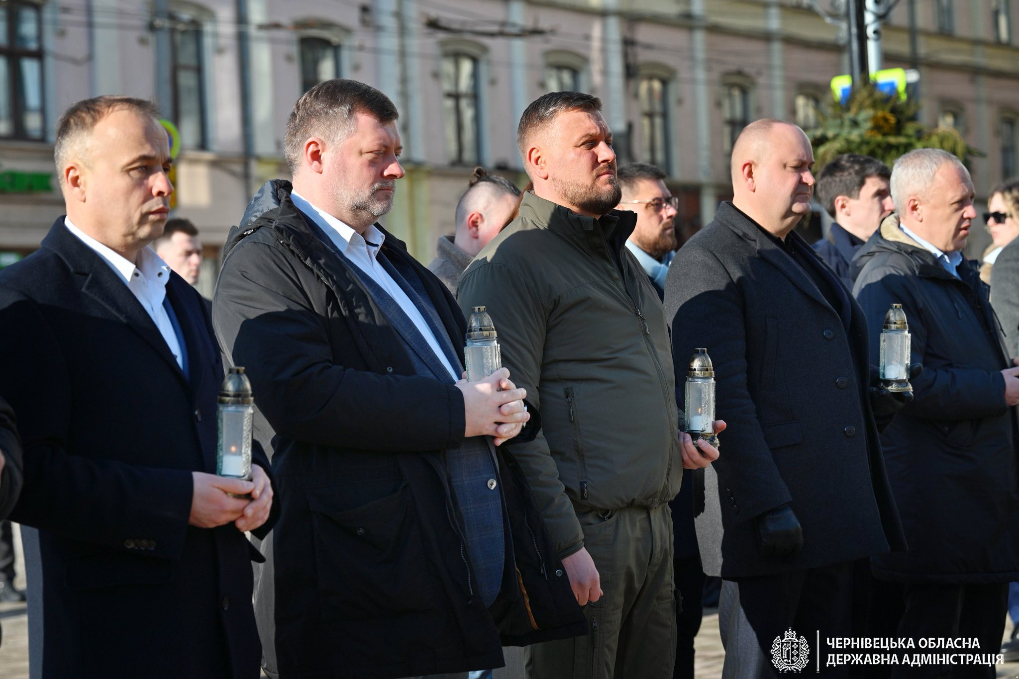 Робочий день розпочали із хвилини мовчання на Центральній площі Чернівців та вшанування памʼяті воїнів, які полягли в боротьбі за свободу і незалежність України.