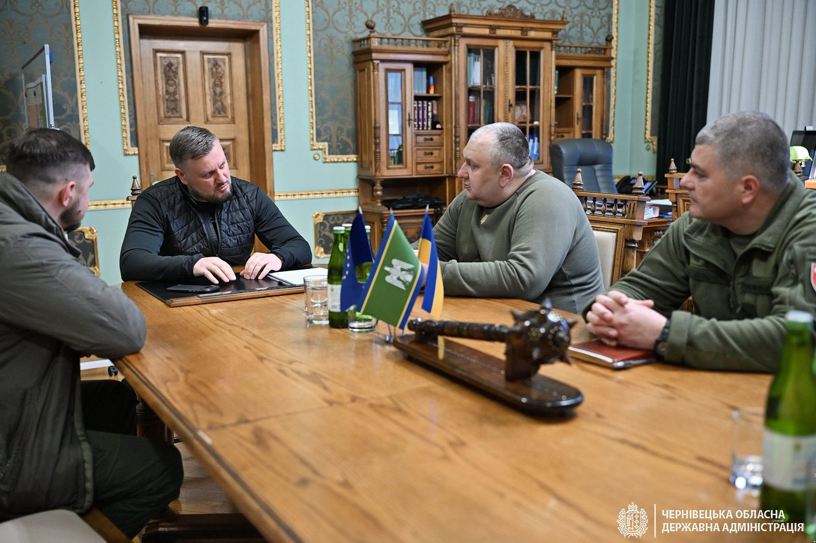 Начальник Чернівецької ОВА Руслан Осипенко провів робочу зустріч із заступником начальника Головного управління Військової служби правопорядку у Збройних Силах України Євгеном Свідерським, начальником Західного територіального управління ВСП Дмитром Місюком та начальником Чернівецького зонального відділу ВСП Сергієм Дурдуком.