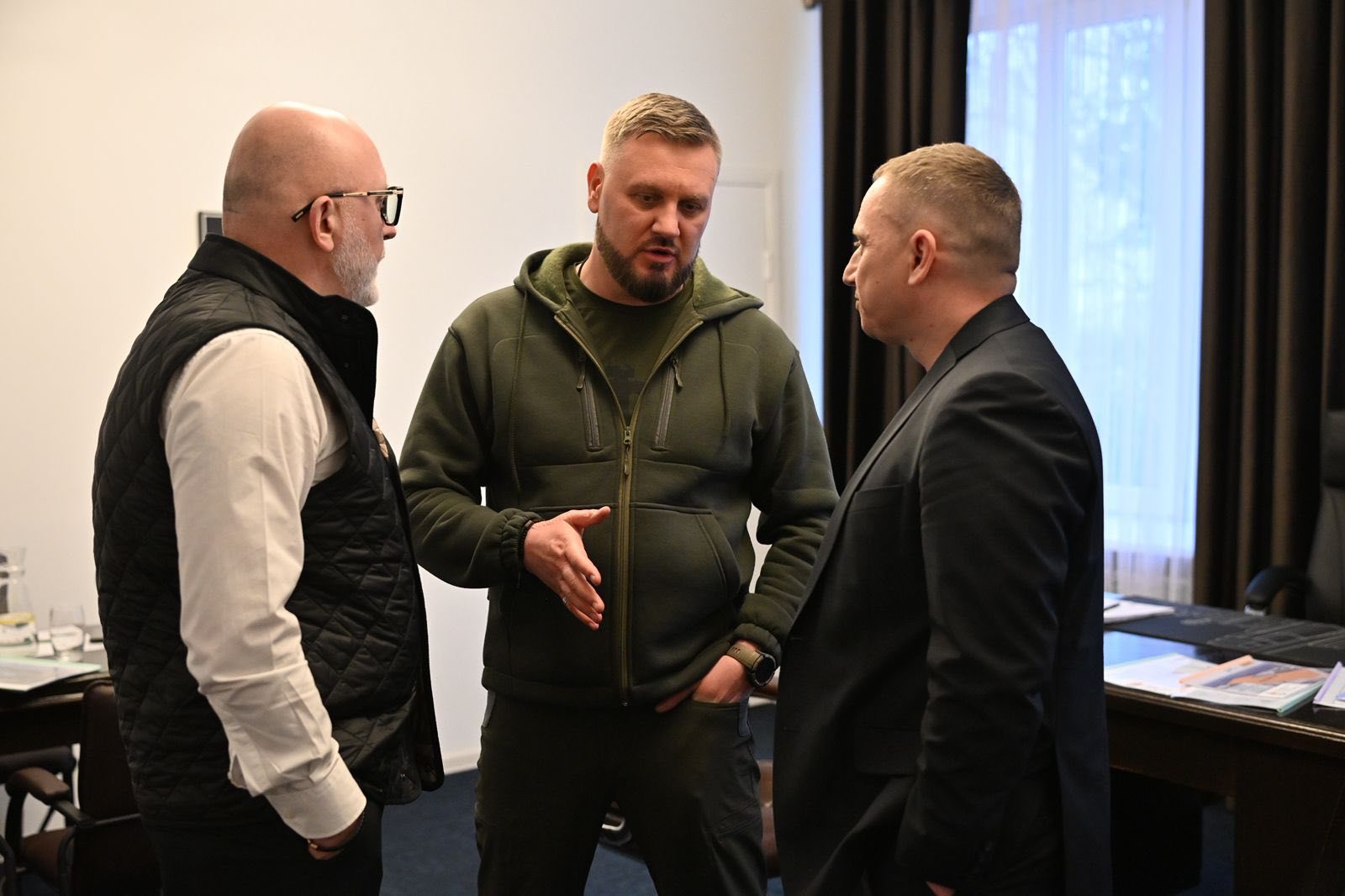 У межах робочого візиту до Хотина начальник Чернівецької ОВА Руслан Осипенко провів зустріч із народним депутатом України Ігорем Марчуком та міським головою Андрієм Дранчуком.