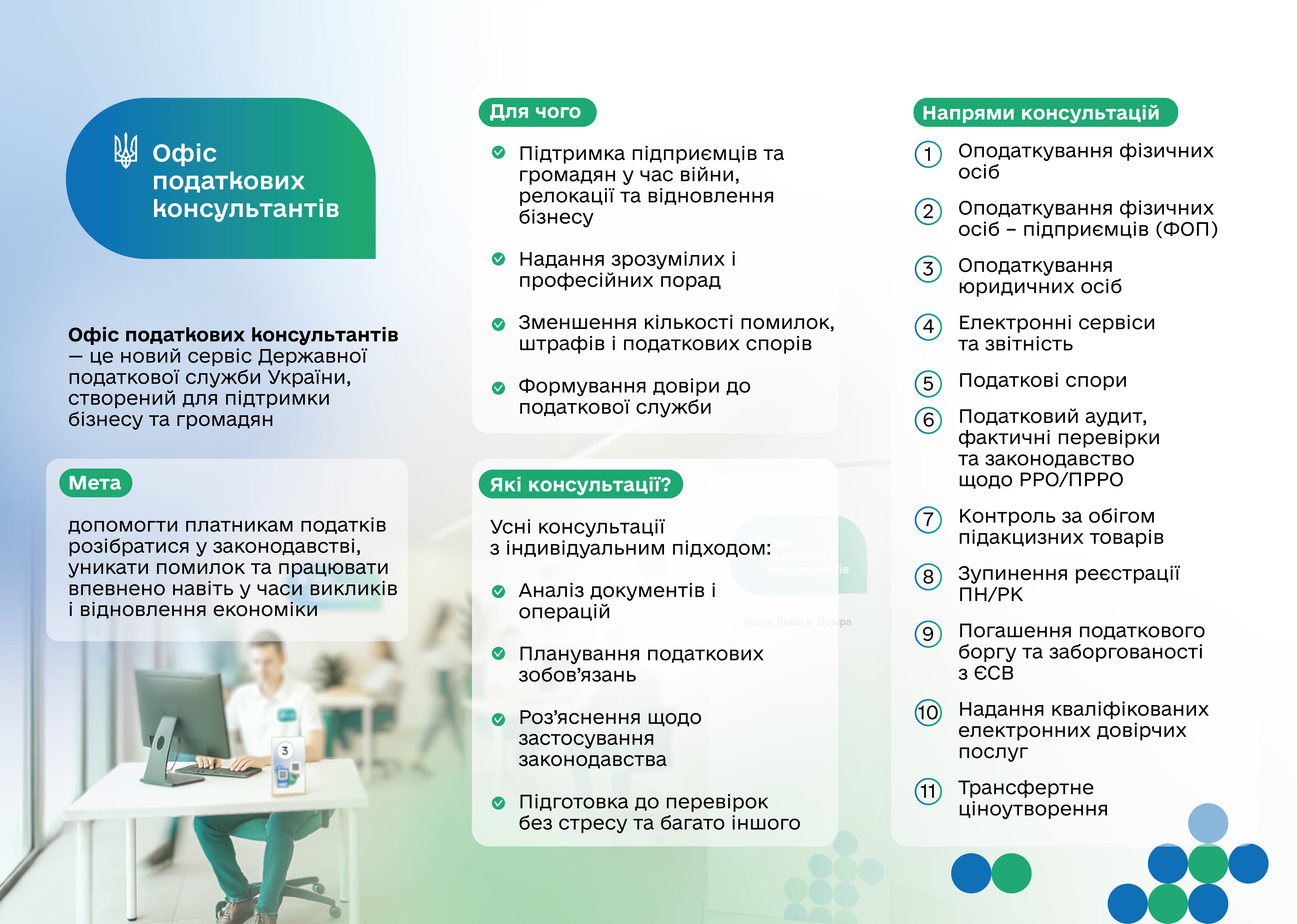 Графік прийому "ОФІСУ ПОДАТКОВИХ КОНСУЛЬТАНТІВ" в Головному управлінні ДПС у Чернівецькій області: https://tax.gov.ua/data/files/592840.xlsx