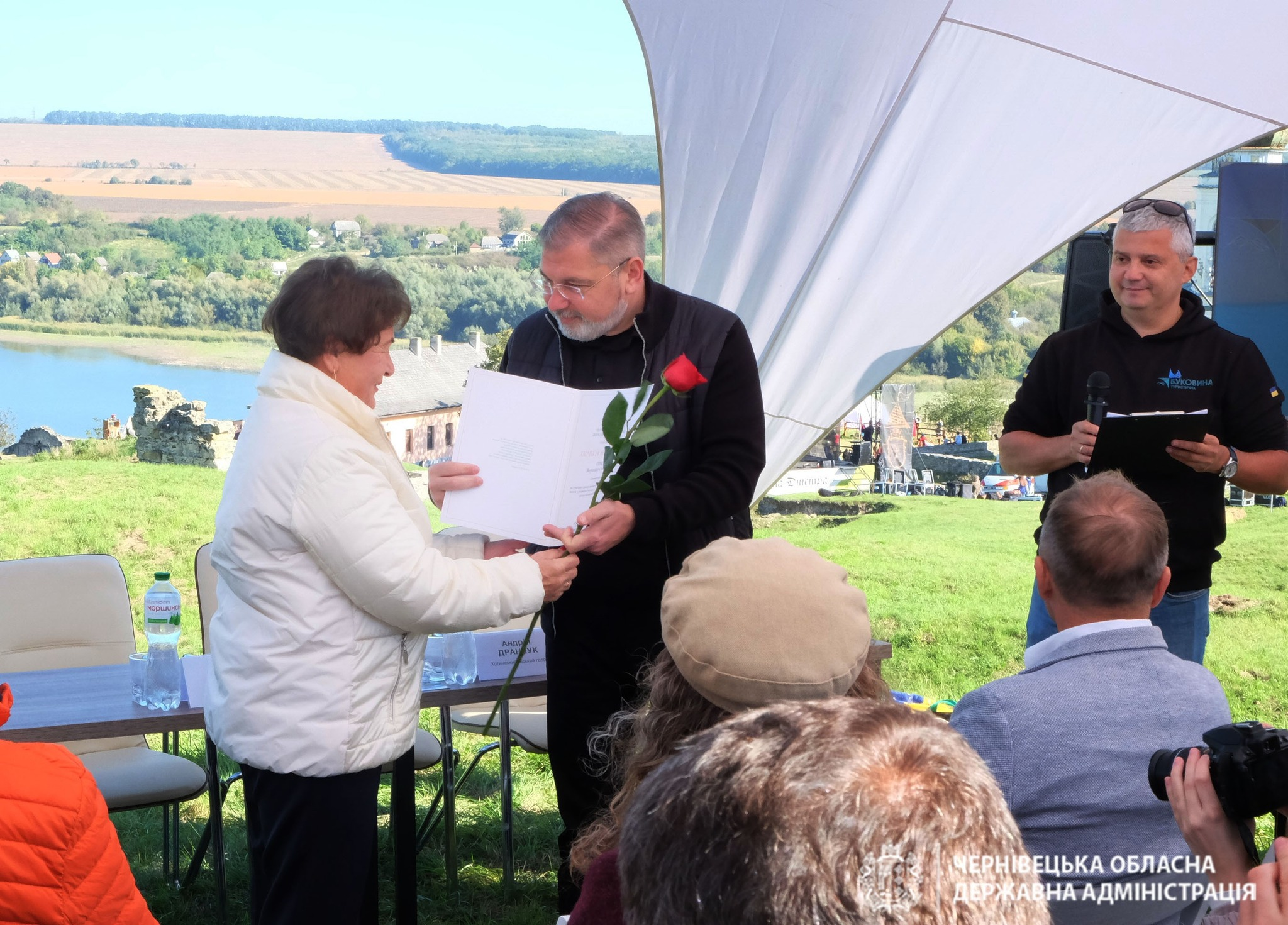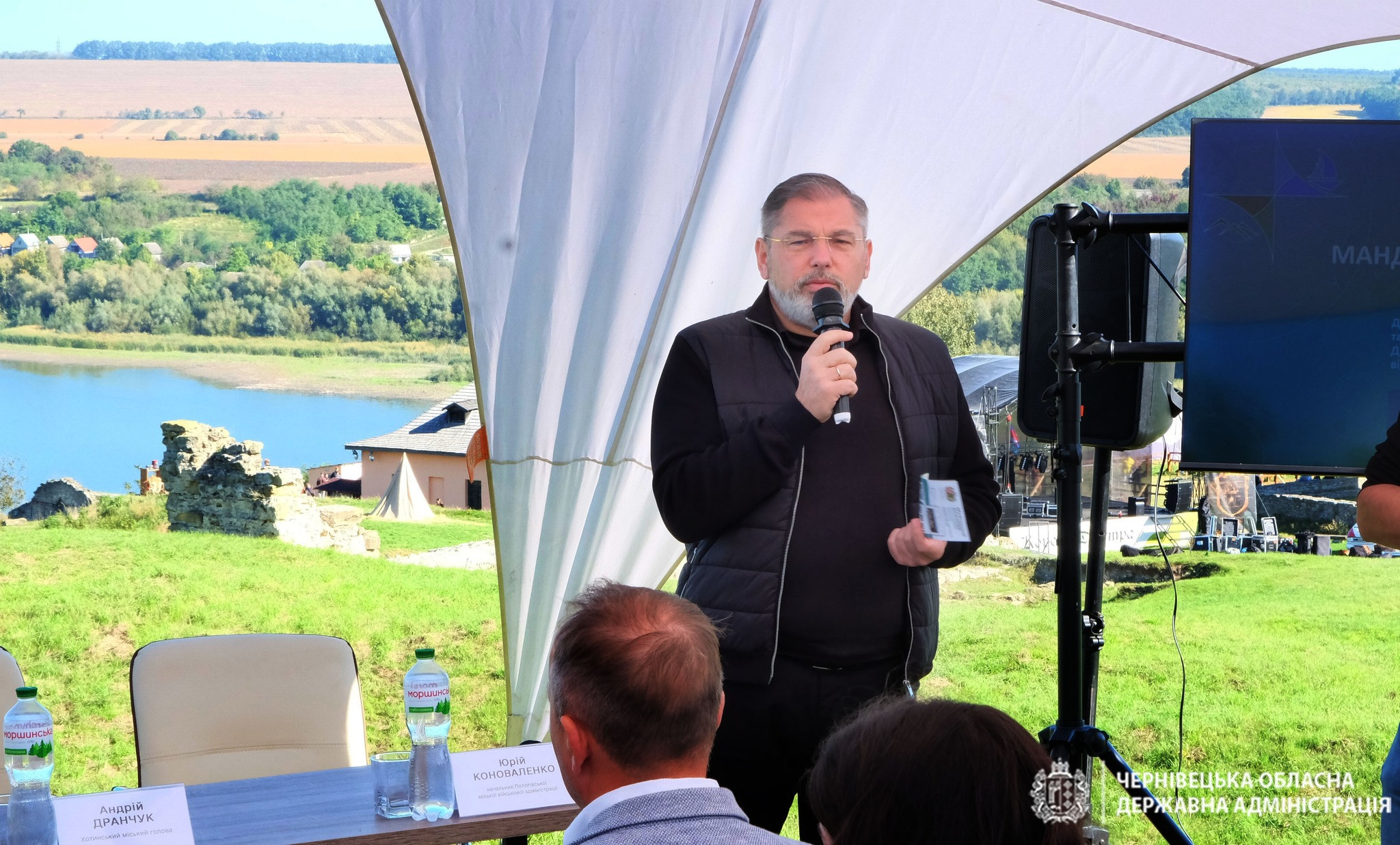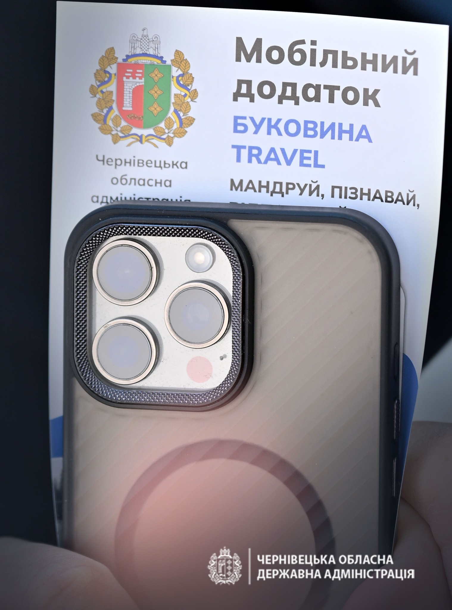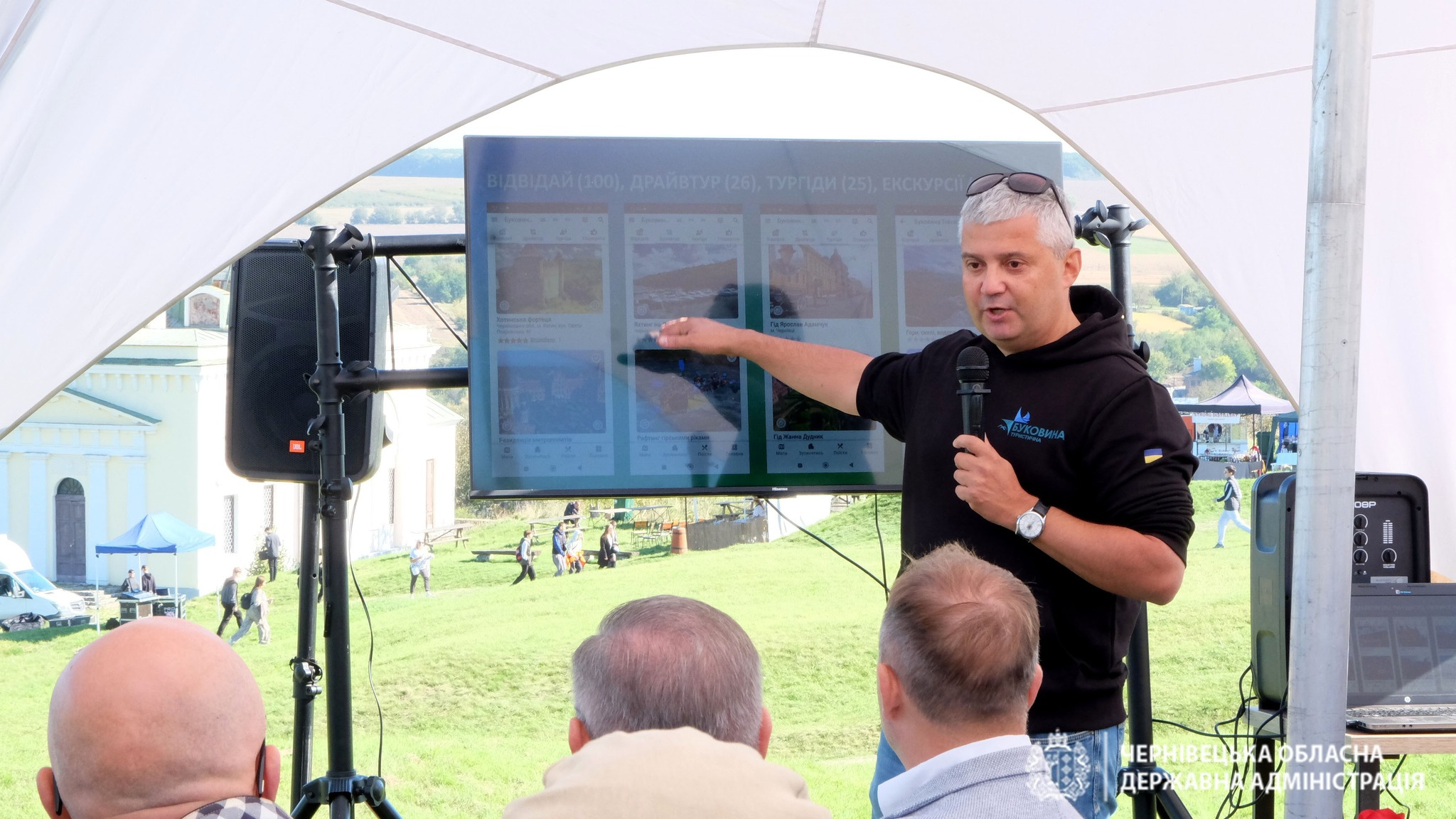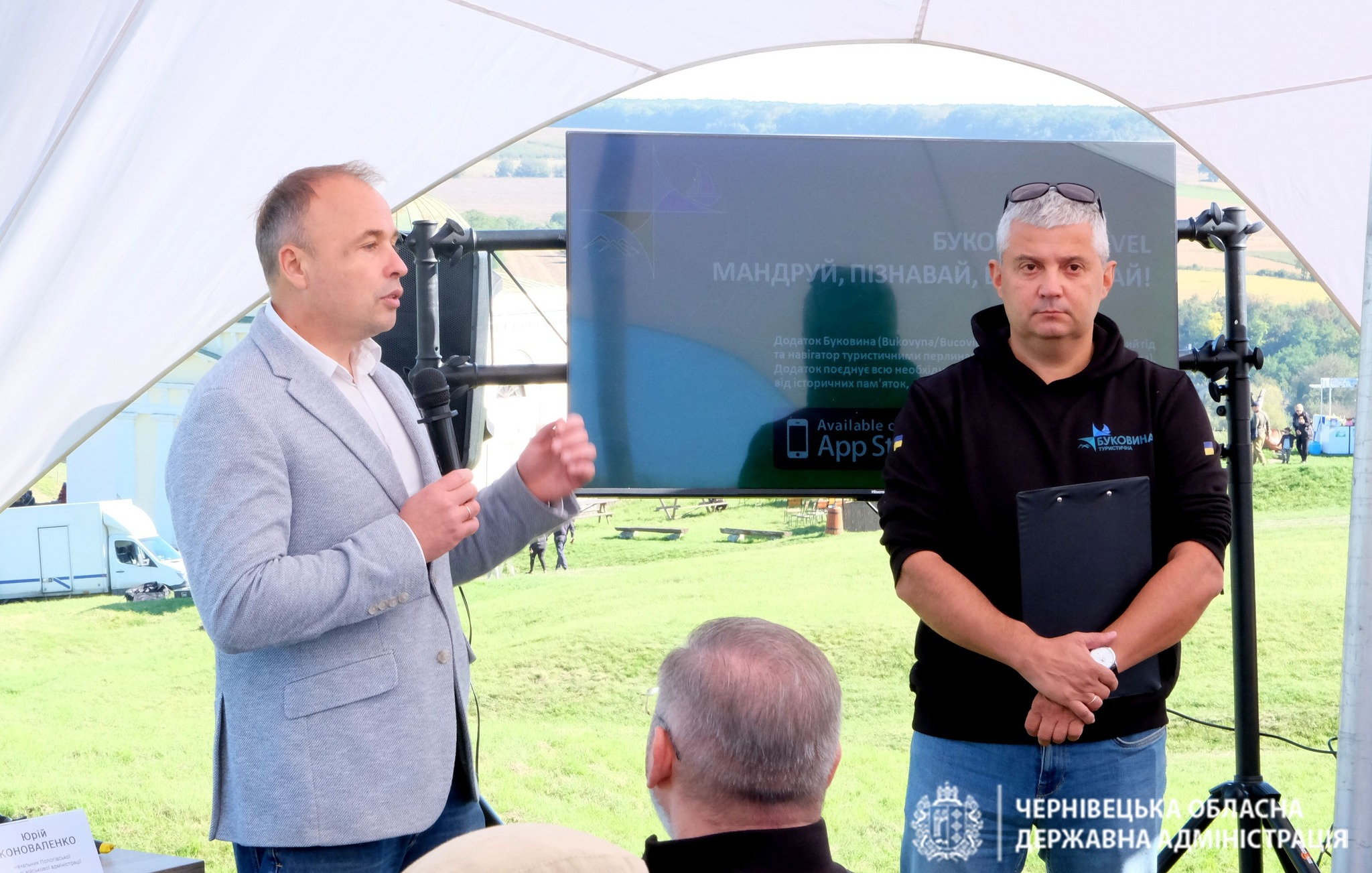 Начальник Черніецької ОВА Руслан Запаранюк: Сьогодні в Хотині, під час туристичного форуму, ми презентували унікальний мобільний застосунок «Буковина Travel», створений Чернівецькою ОВА.