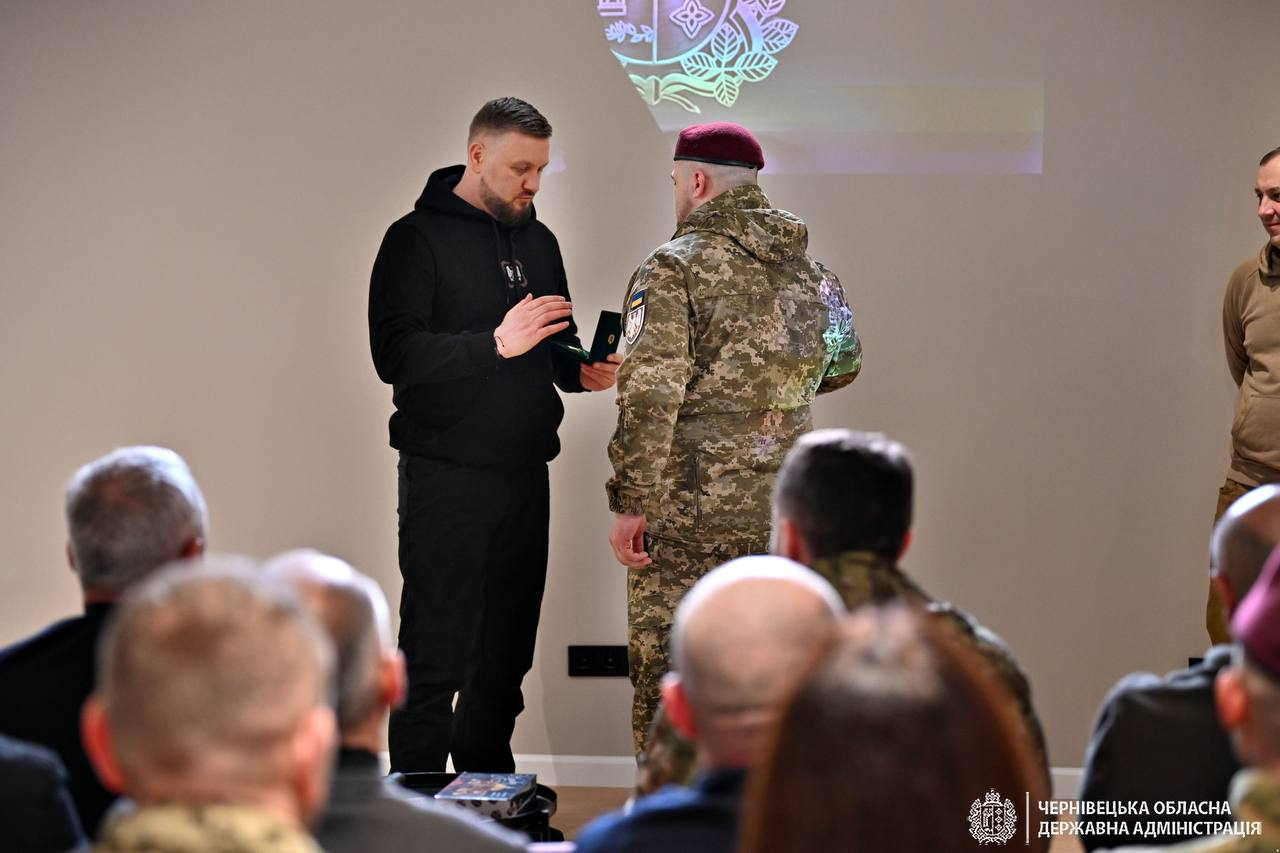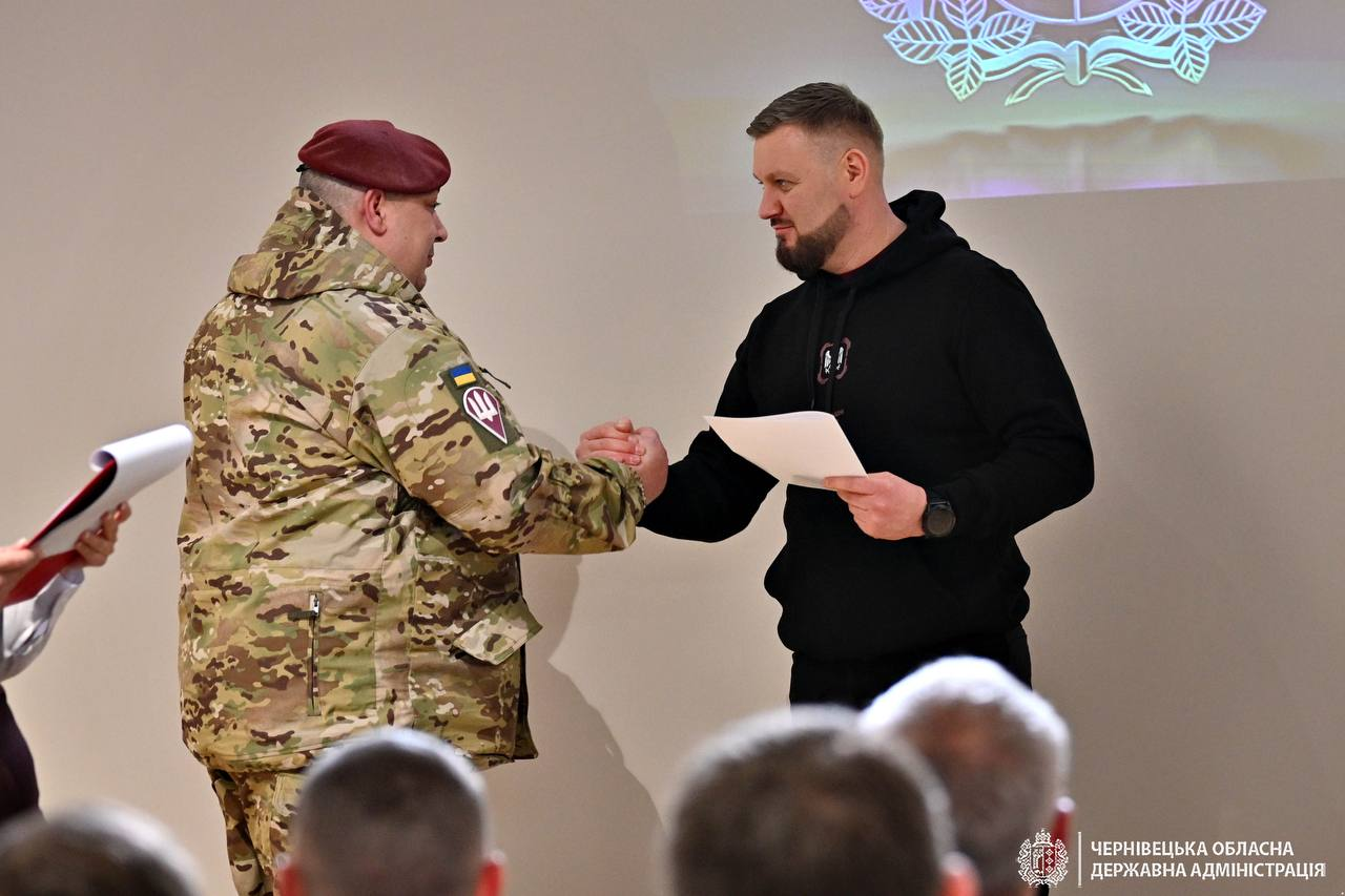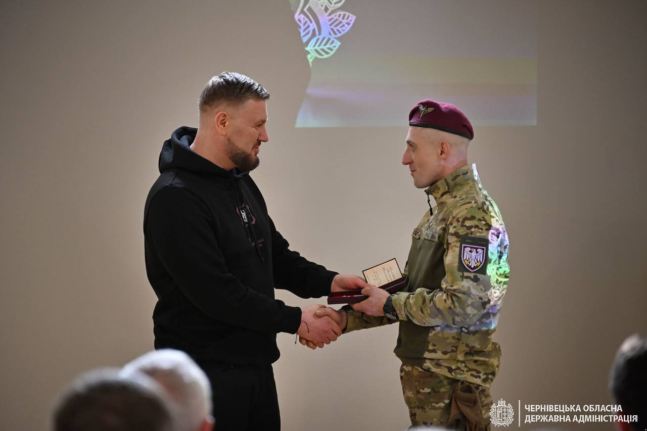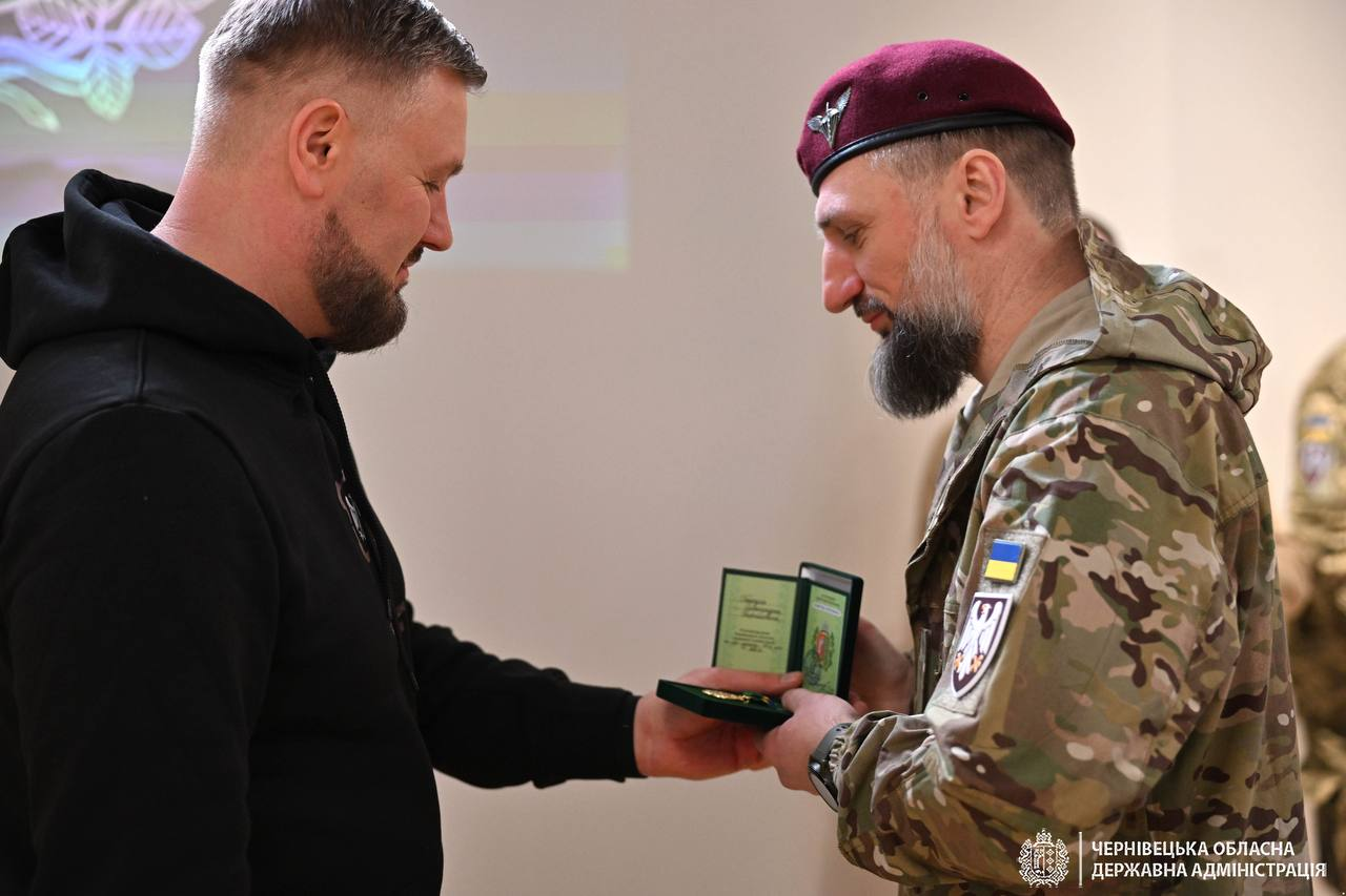 За дорученням Президента України Володимира Зеленського, під час відкриття публічного простору 82-ї Десантно-штурмової Буковинської бригади начальник Чернівецької ОВА Руслан Осипенко передав бійцям високі державні нагороди.
