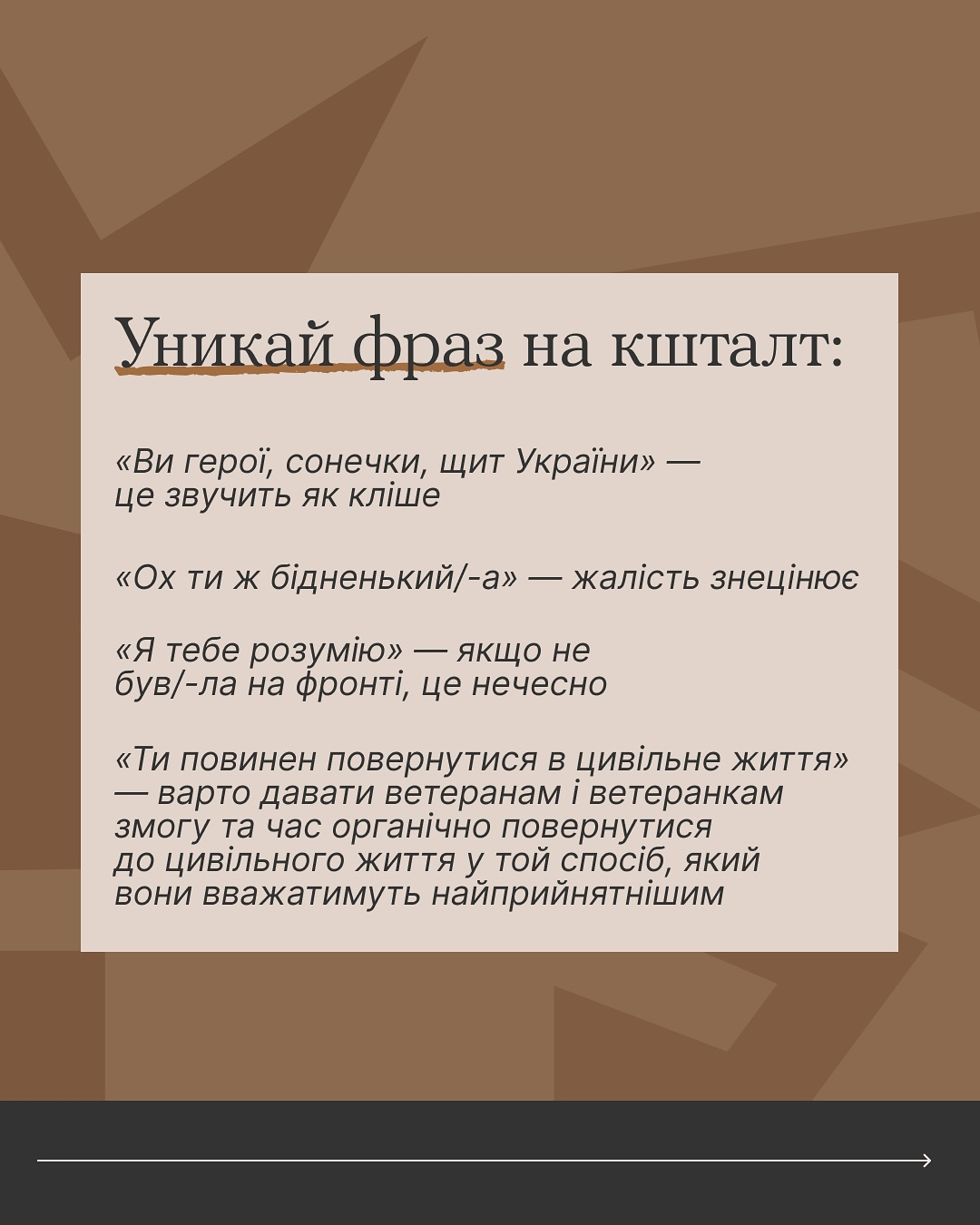 Якщо переживаєш, що в розмові з ветераном чи ветеранкою можеш сказати щось не те — читай карусель
