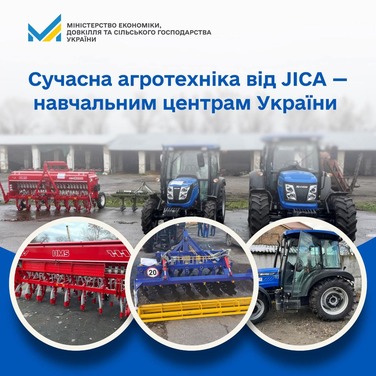 Йдеться про два трактори потужністю 50 та 110 к.с, зернову сівалку, суцільний культиватор до трактора.