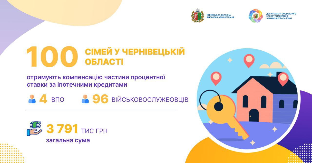 У Чернівецькій області вже 100 сімей отримують компенсацію частини процентної ставки за іпотечними кредитами.