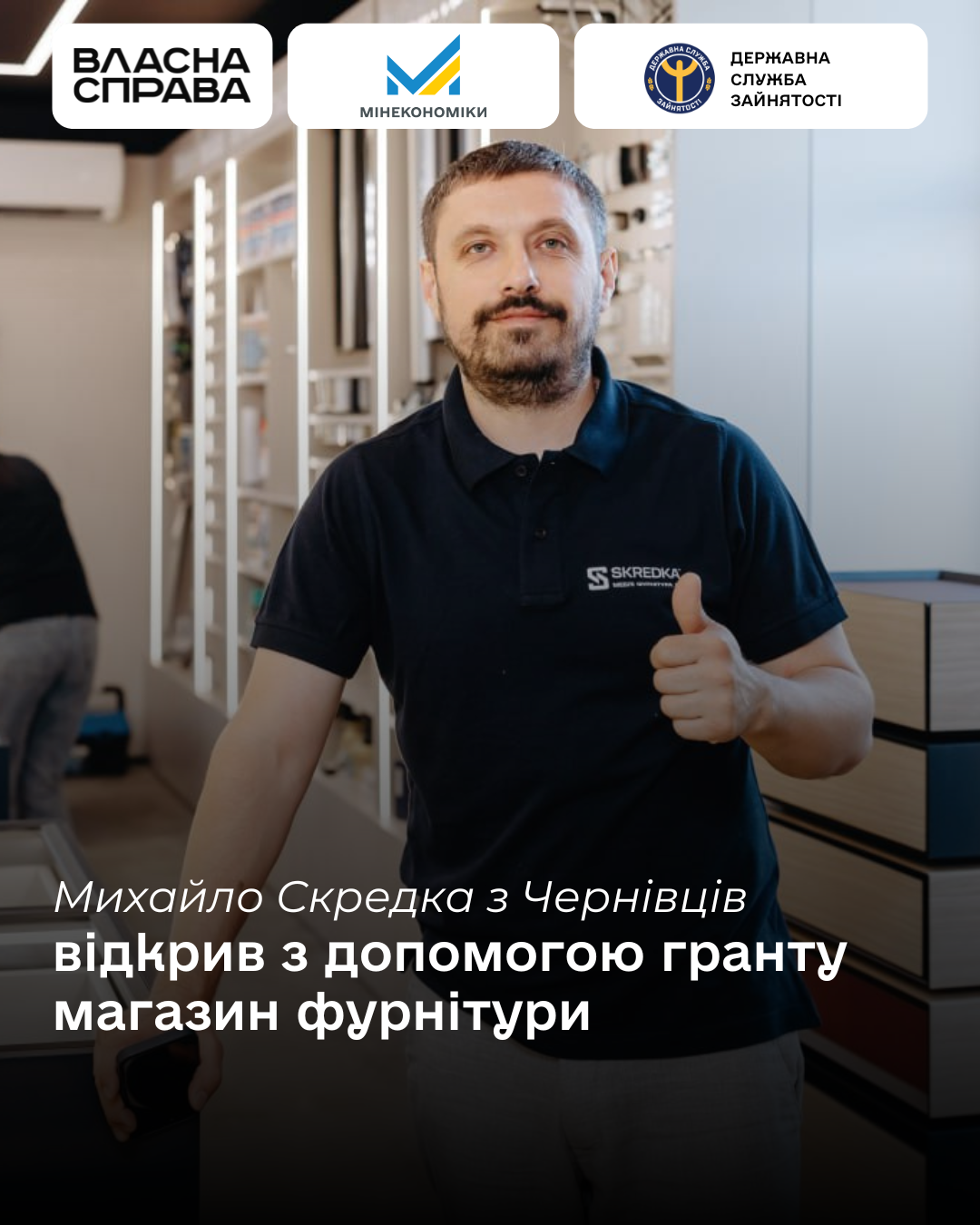 Михайло Скредка – підприємець із чотирирічним досвідом роботи на меблевих виробництвах, відкрив магазин меблевої фурнітури за допомогою державного гранту «Влсна справа».