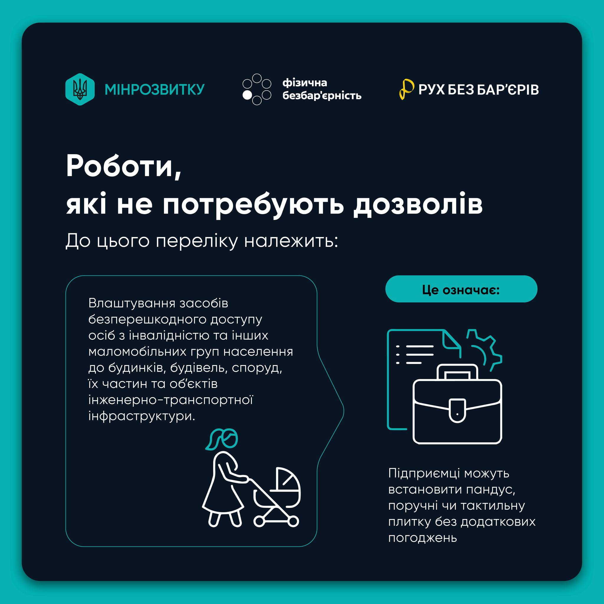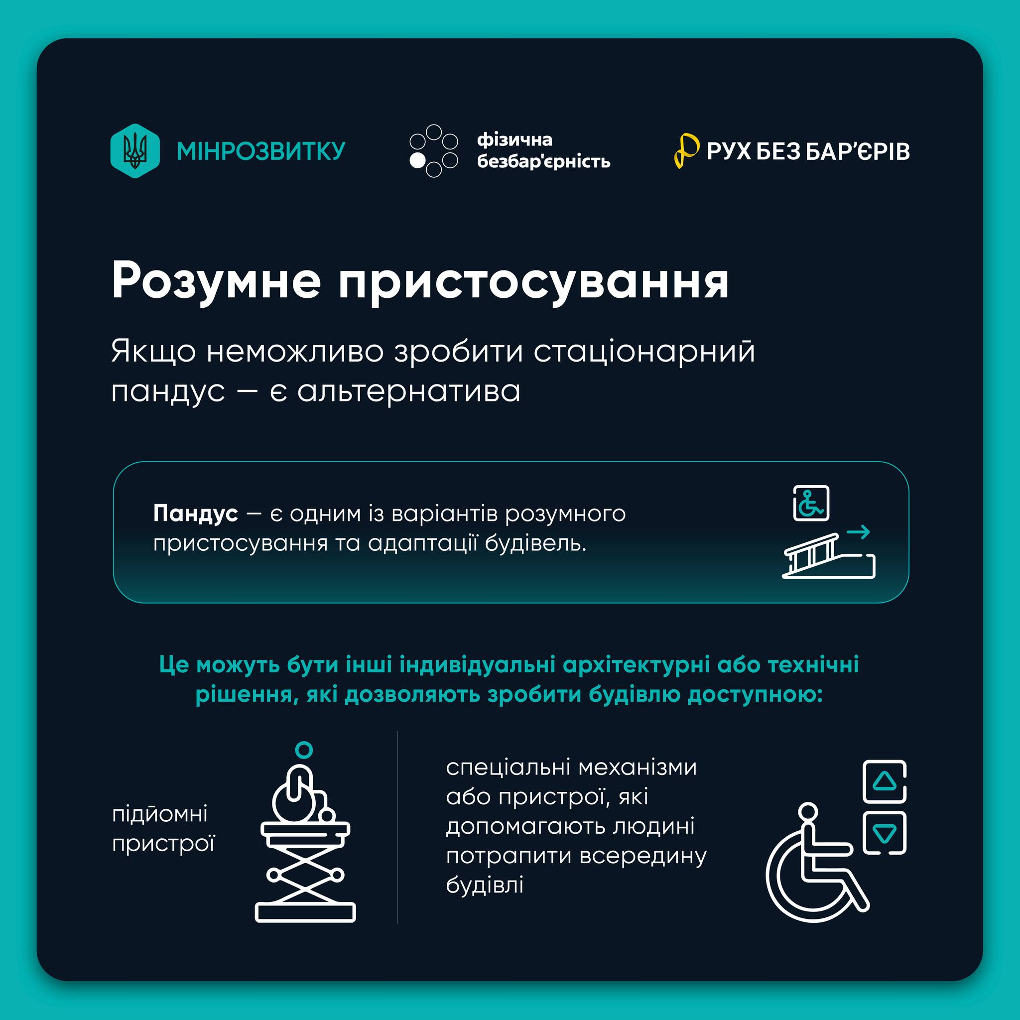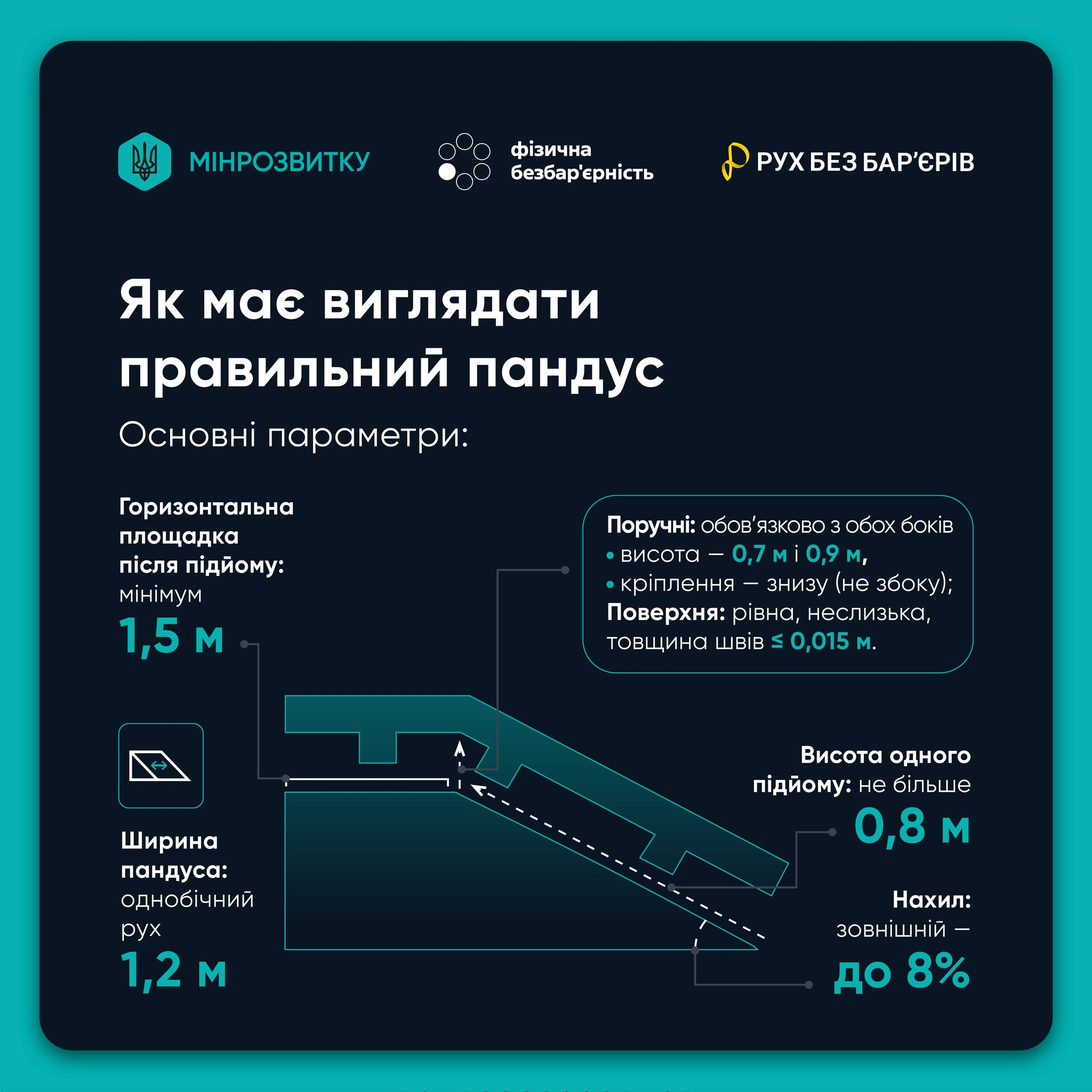 Визначені чіткі параметри для облаштування безпечних і зручних пандусів, підйомників та інших засобів доступності під час будівництва або реконструкції житлових і громадських об’єктів.
