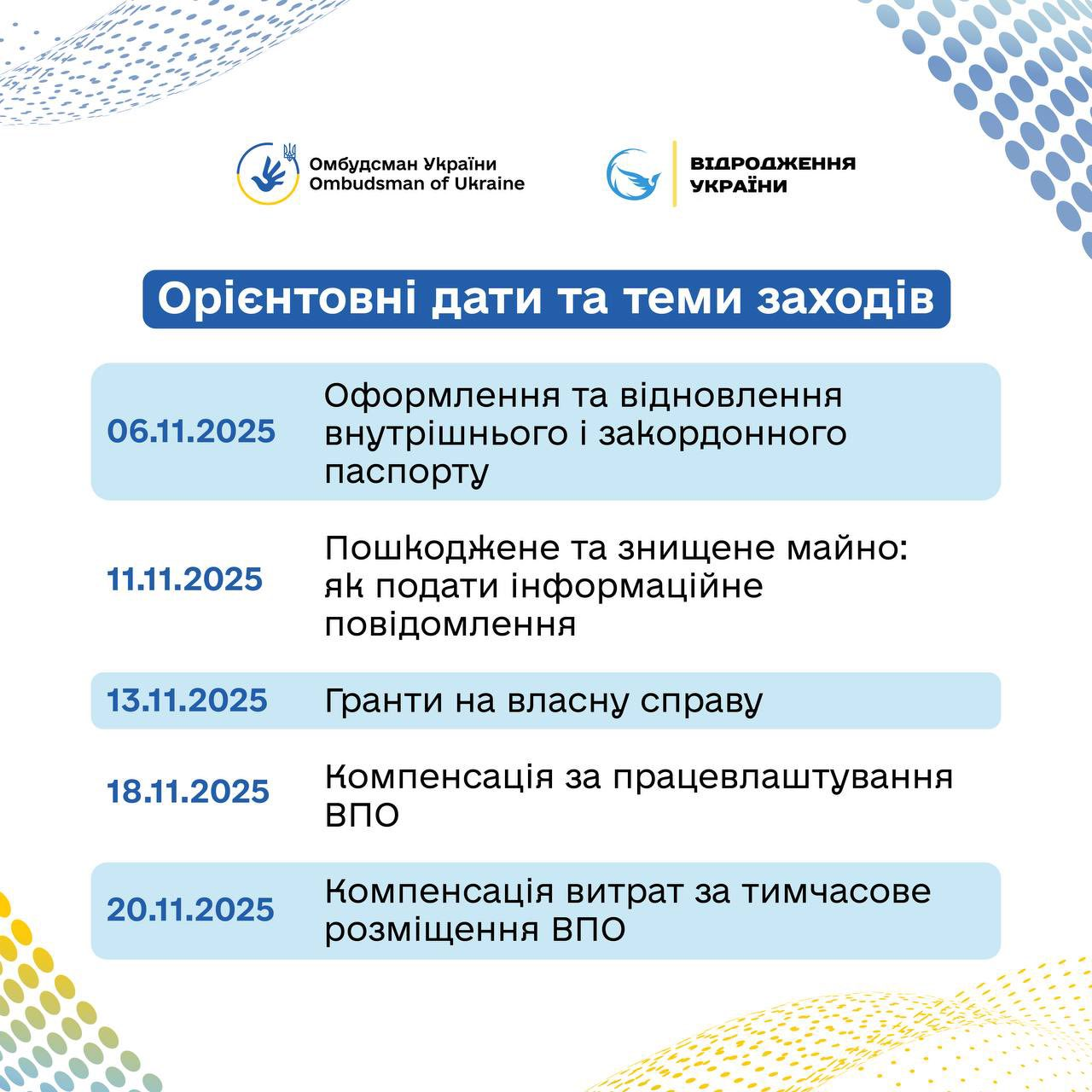 Ініціатива реалізована ГО «Відродження України 2022» спільно з Офісом Омбудсмана за підтримки проєкту Ради Європи «Удосконалення судових та позасудових засобів захисту прав осіб, постраждалих від війни в Україні».